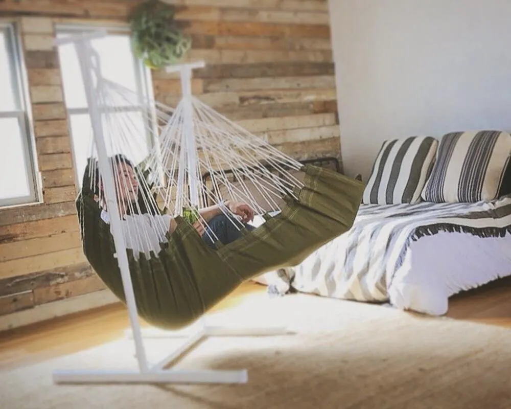 ハンモック単体でお部屋やアウトドアでのご使用はもちろん、スタンド(別売り)と一緒のご使用で、より使用の幅が広がります。