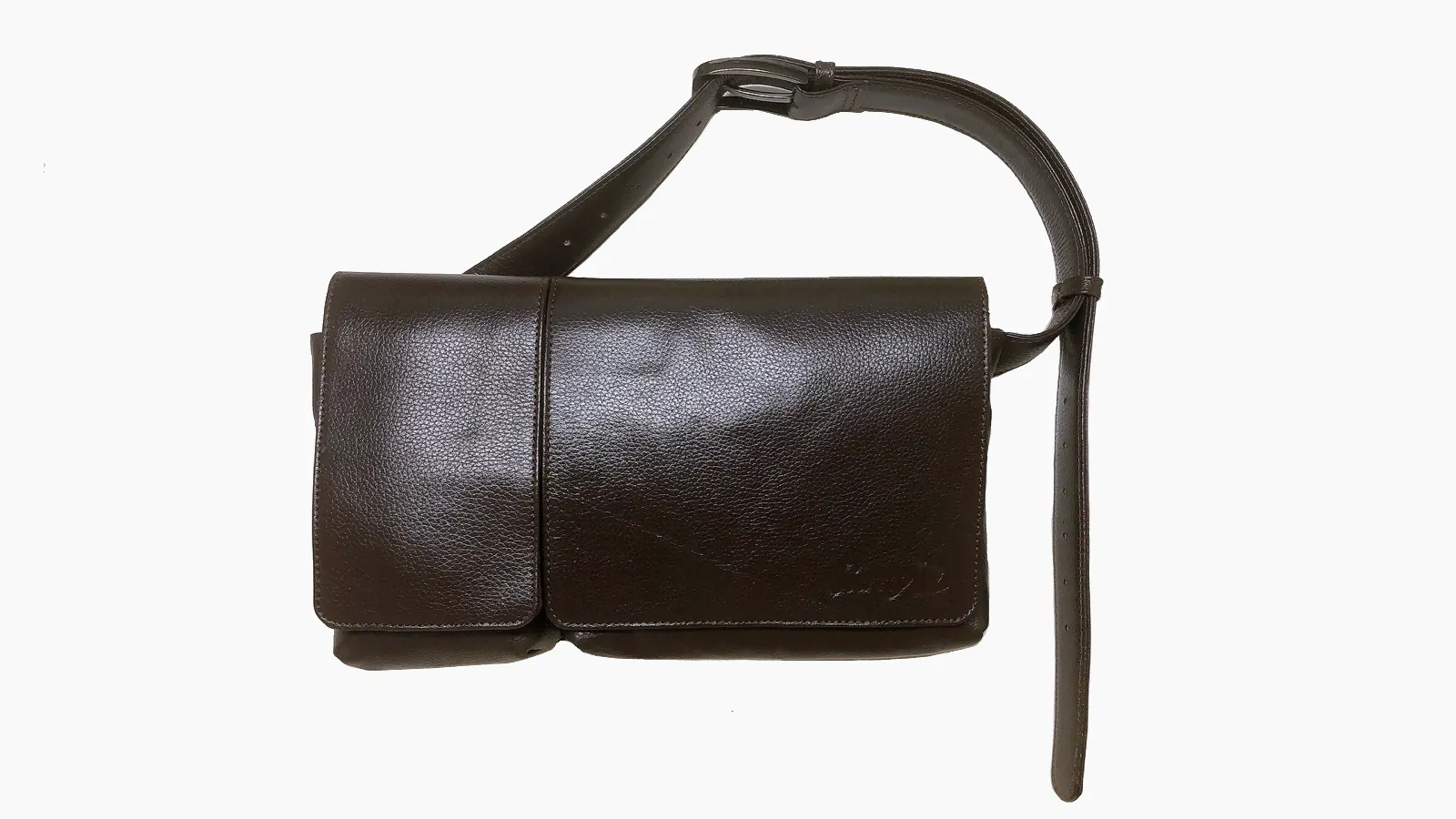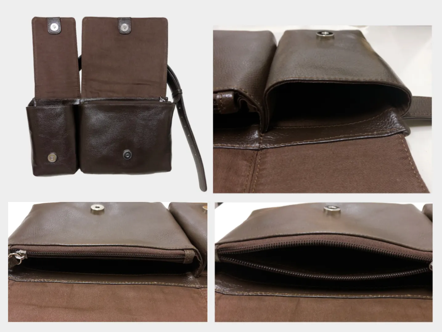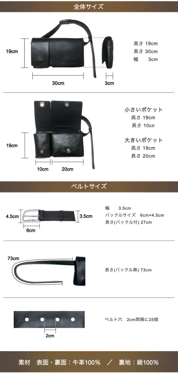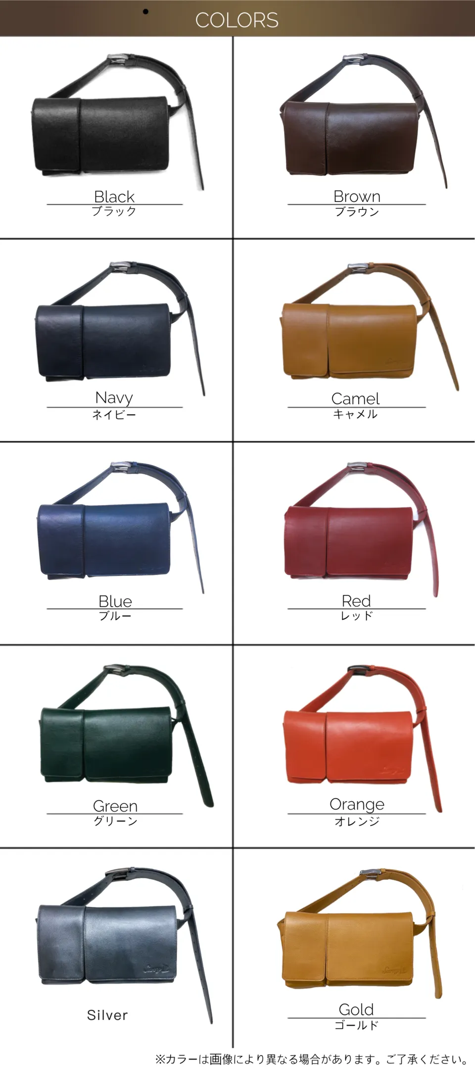 牛革ボディ&ヒップバッグは「スマホポーチ」と「ボディバッグ」を1つにした新しいデザイン、スマホ時代にマッチしたバッグです。