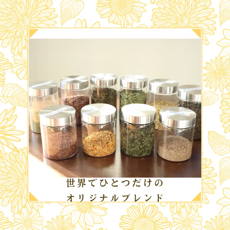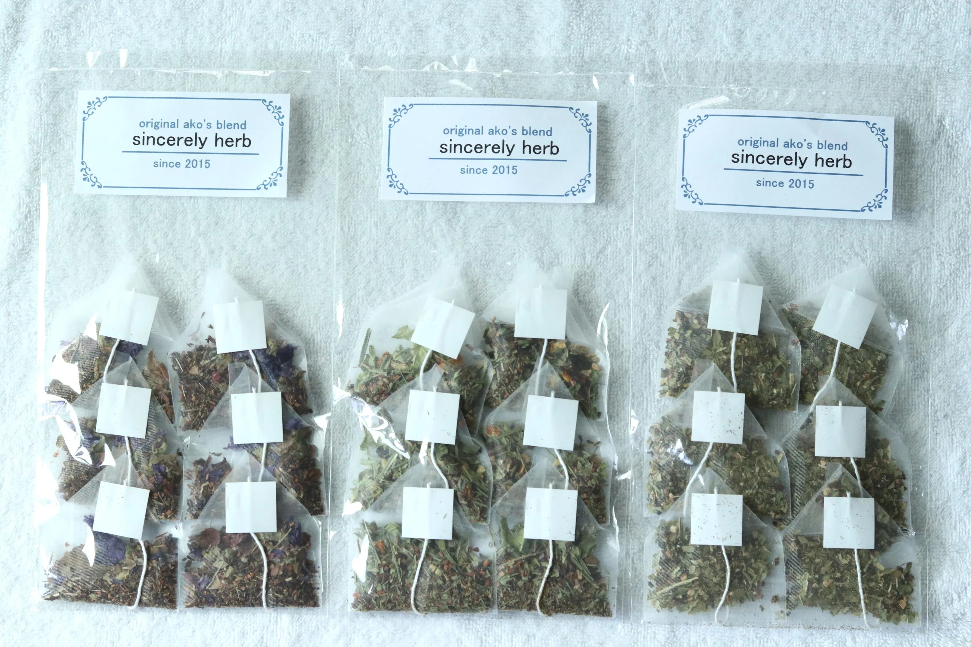 sincerely herb~あこ茶~は起業当時からディスカッションから発送まで全て一人で行っています。そんなハーブティーは、大量生産では叶わない「想いに寄り添うブレンド」が特徴です。