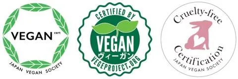 動物や環境への影響を配慮し、植物由来の成分を使用しています。また、動物由来の成分は一切使用せず、動物実験も行っておりません。これを示すために、ヴィーガン認証とクルエルティフリーを取得しています