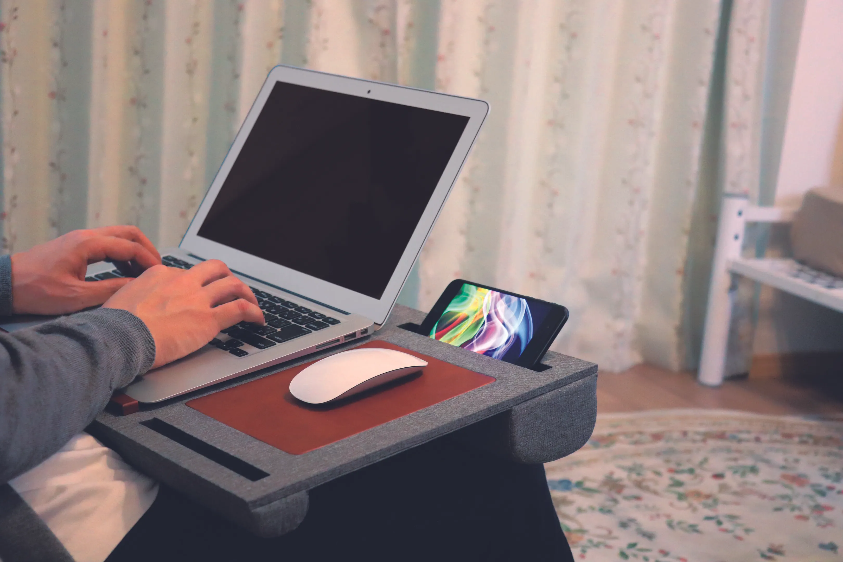 ポーチを開くとリストレスト一体型のマウスパッドとして、快適に仕事をすることができます。
