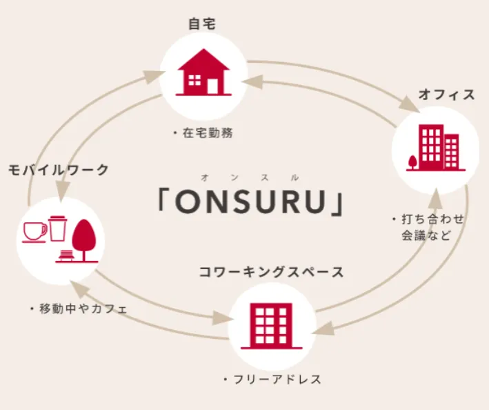 “ONSURU”は、仕事に必要な道具を持ち運びやすく、どんな場所でも働きやすい、場所にとらわれない、快適なワークスペースをサポートを提案しています。