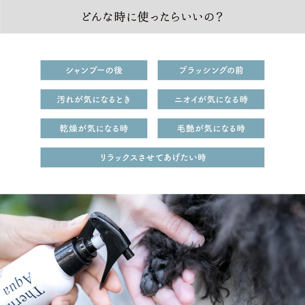 足をなめる癖があり、舐めた足がかゆいらしく 、毛をむしるようになっていました。散歩帰りの足を拭く際に、テルマリズムアクアをスプレーしてみました。