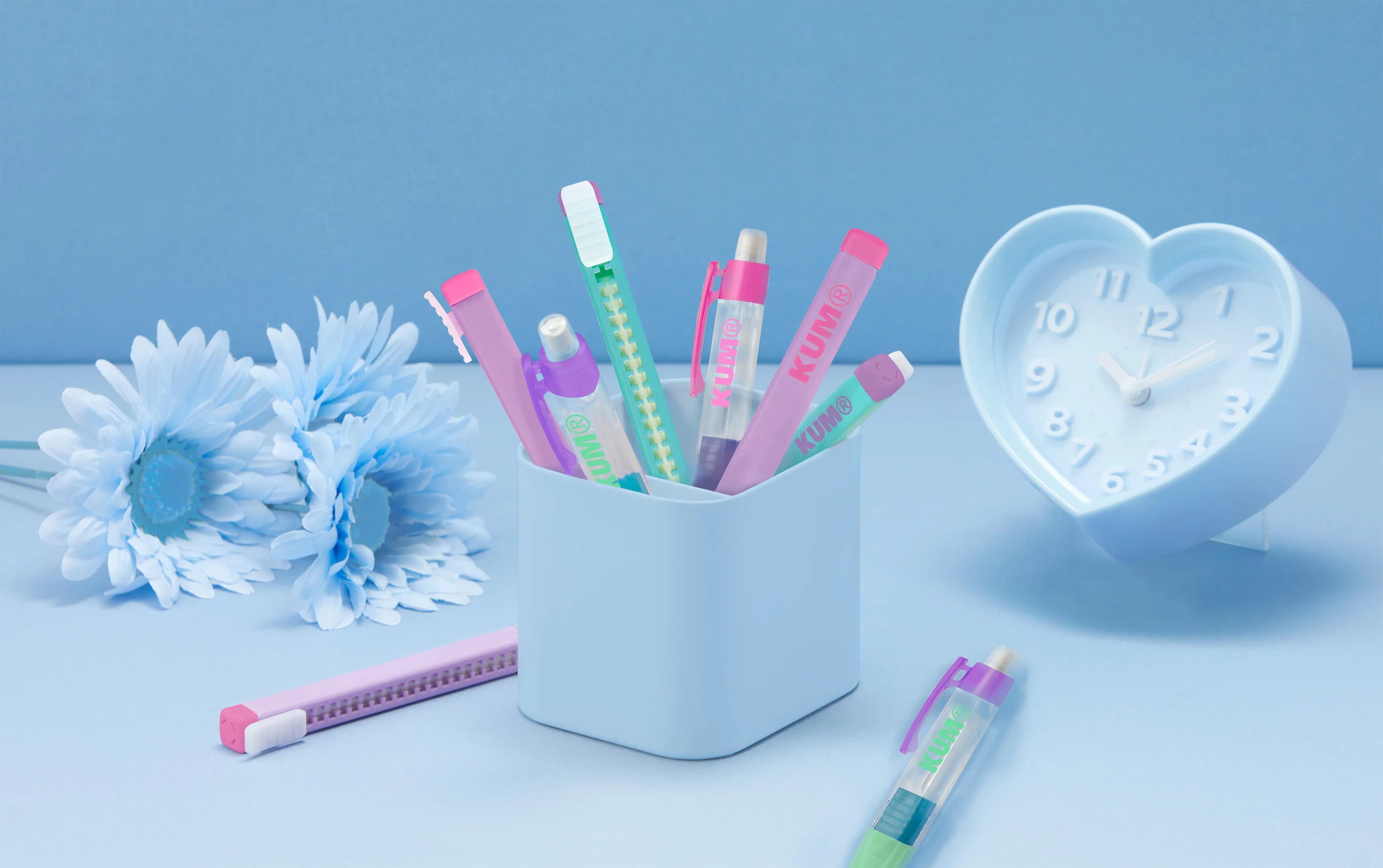 KUMブランドは日本ではティーンズに非常に大きな人気があり、二コラなどの雑誌にもよく取り上げられる文具のブランドとなっております。