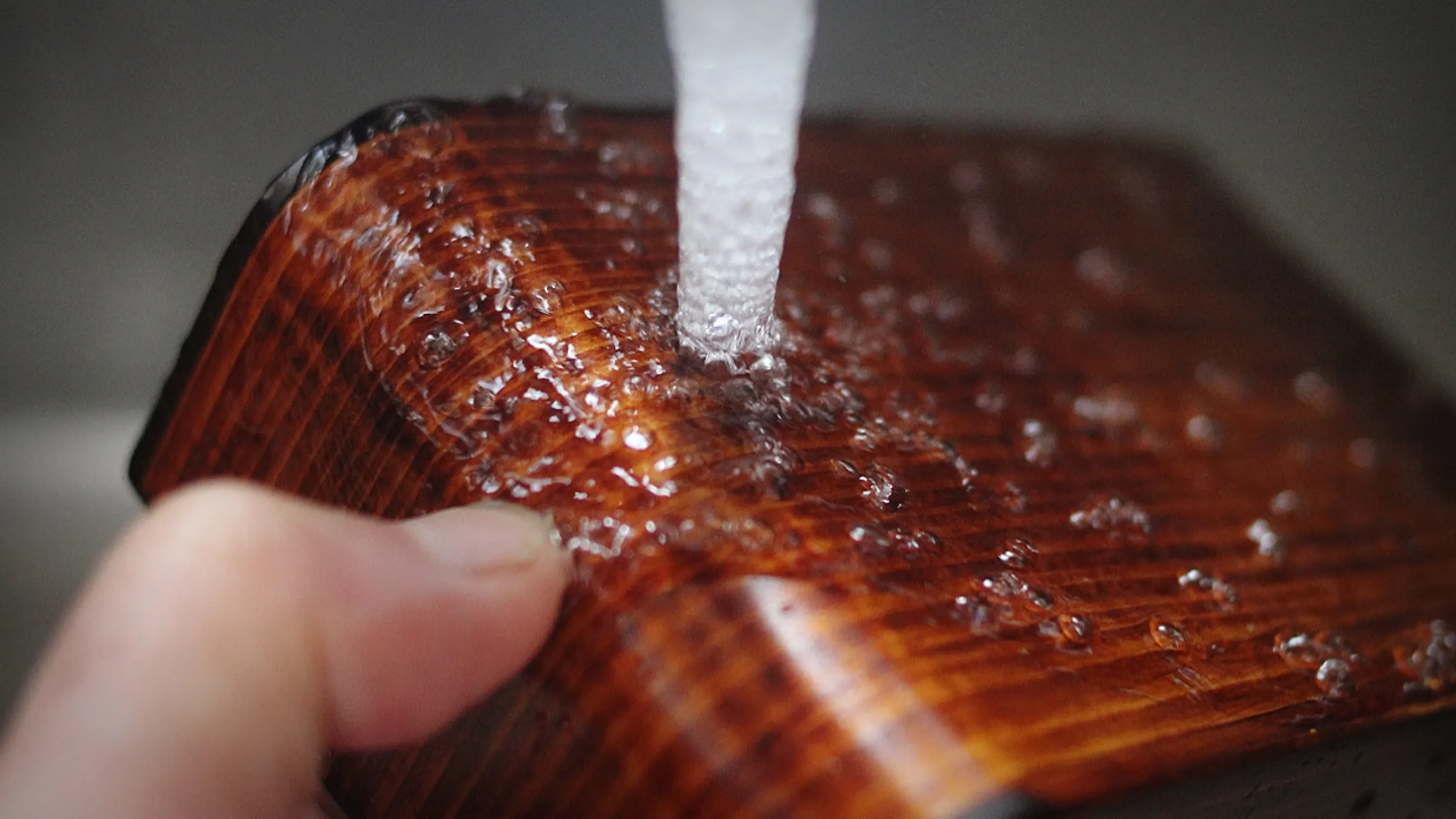 漆には耐水性があり、天然の抗菌作用を持ちます。木の呼吸を妨げないよう漆を重ねて擦り込んで塗ることで、使うほどに味わいが出る製品が出来上がります。