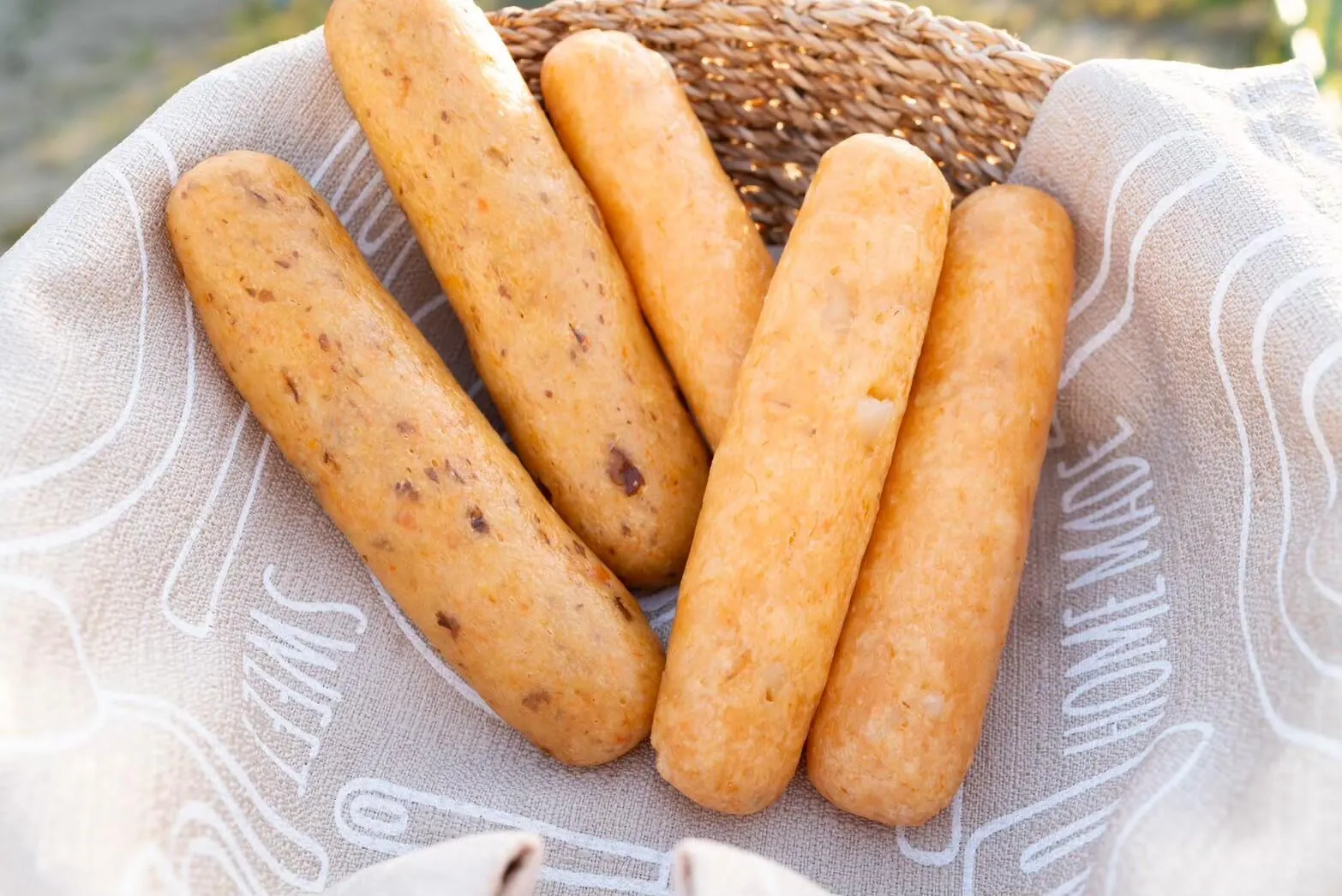 私たちの看板商品である「豆っとベジもっちーmini」は、お米・無農薬野菜・お豆が一度に摂れる栄養バランス抜群の一品です。もちもちとした食感と、噛むほどに感じる野菜と米の自然な甘みが特徴。一本あたり62kcalと低カロリーながら、たんぱく質1.8g、食物繊維も豊富で、おやつとしてもお食事としても最適です。冷凍保存可能で、トースターで温めるだけで手軽に楽しめます。