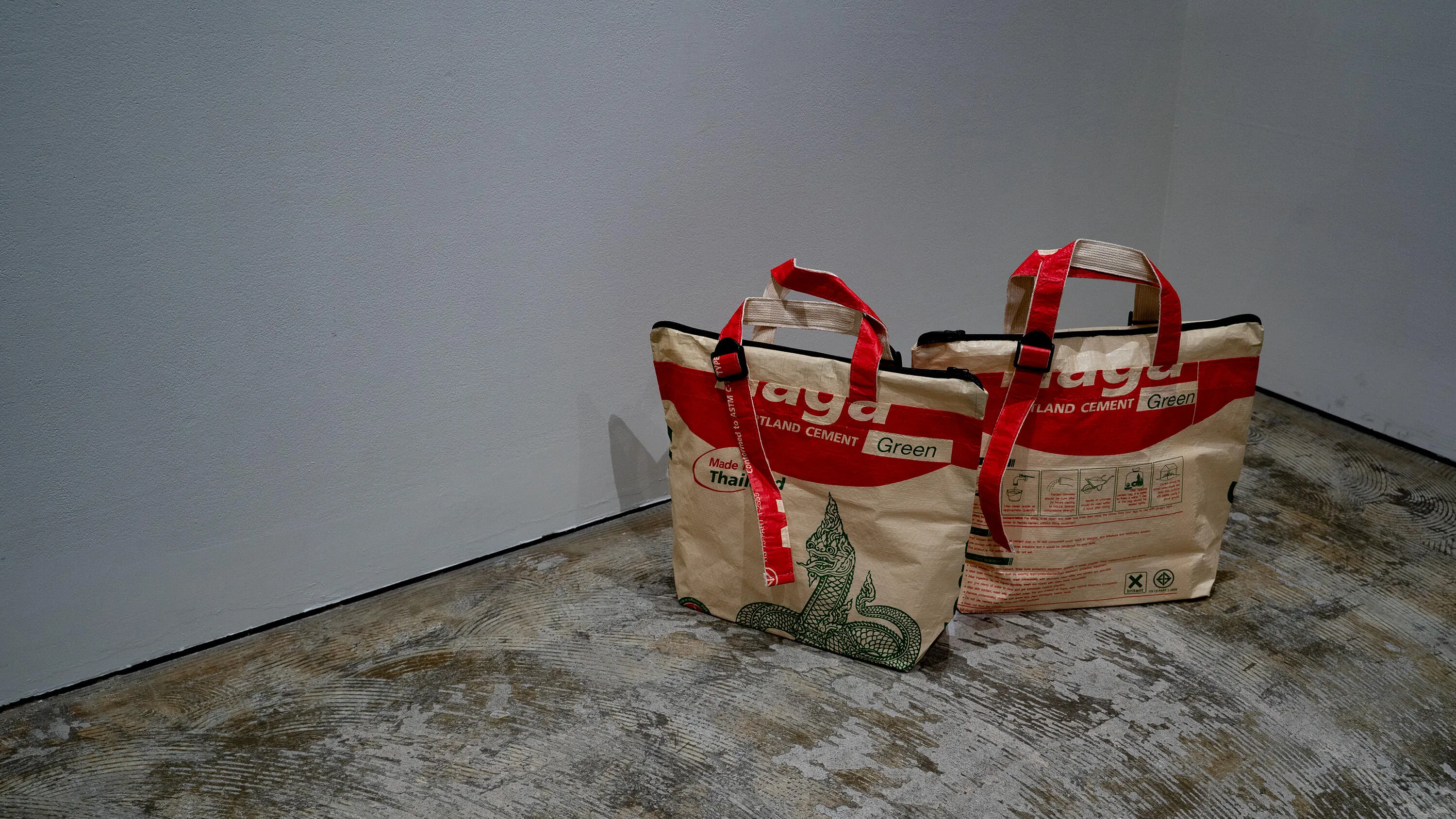 THAILANDMADEのリサイクルBAGに使われる素材はセメントを運ぶ為に作られており、耐荷重20kgの強度と耐水性も備えています。