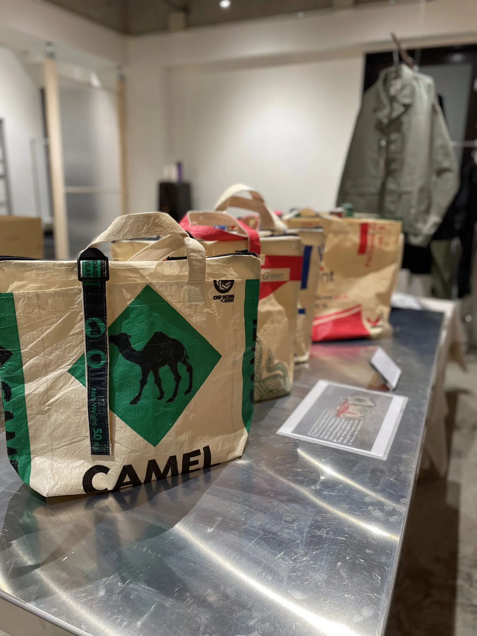 タイで廃材として流通するセメントの袋は20kgの重さにも耐える素材で、耐水性も備えています。 さらには日本の廃材にはない鮮やかな色彩や、ユニークなデザインが特徴的です。これを私たち チームが持つ経験や知見を使って日本市場に最適な形でブランディングし商品の魅力を伝える ことにしました。