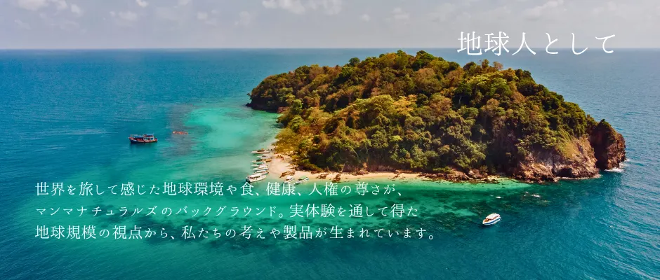 世界を旅して感じた地球環境や食、健康、人権の尊さが、マンマナチュラルズのバックグラウンド。実体験を通して得た地球規模の視点から、私たちの考えや製品が生まれています。