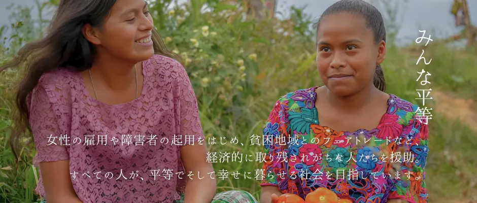 女性の雇用や障害者の起用をはじめ、貧困地域とのフェアトレードなど、経済的に取り残されがちな人たちを援助。すべての人が、平等でそして幸せに暮らせる社会を目指しています。