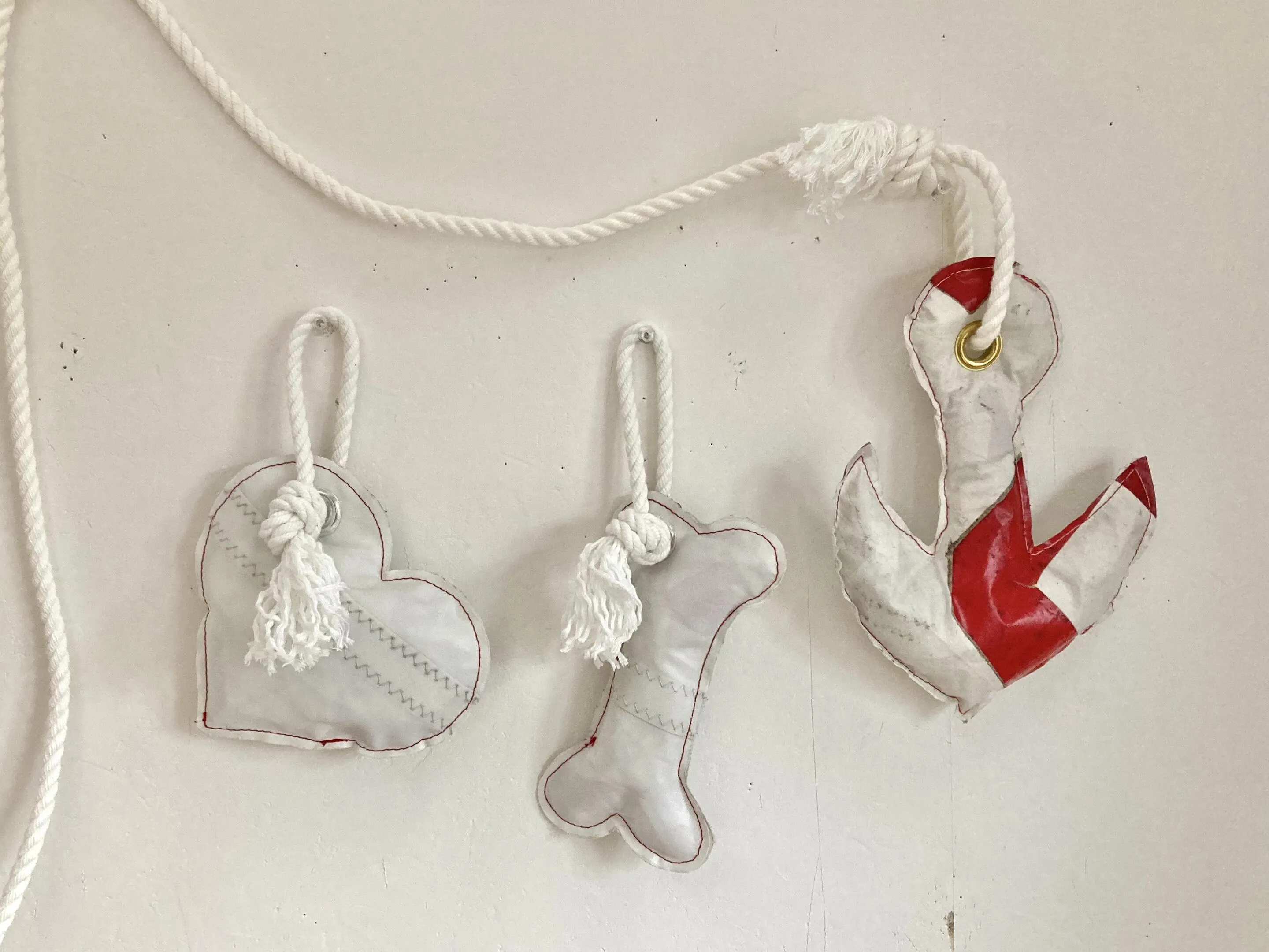 不要なヨットロープや消防用ホース、アップサイクルセイルなどで作った、見た目も可愛いわんちゃん用のおもちゃです。
