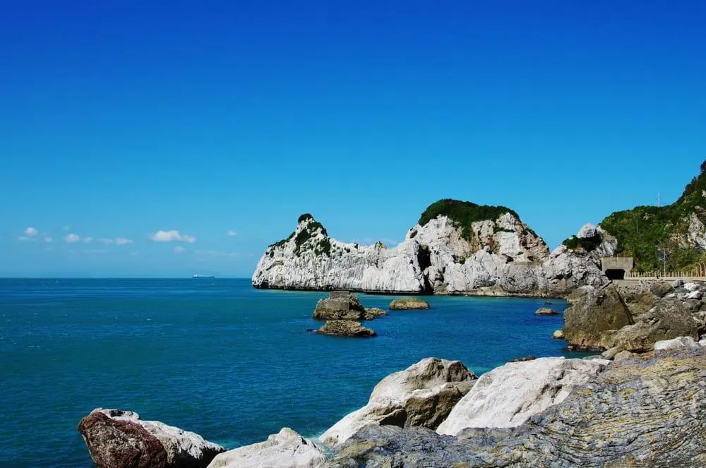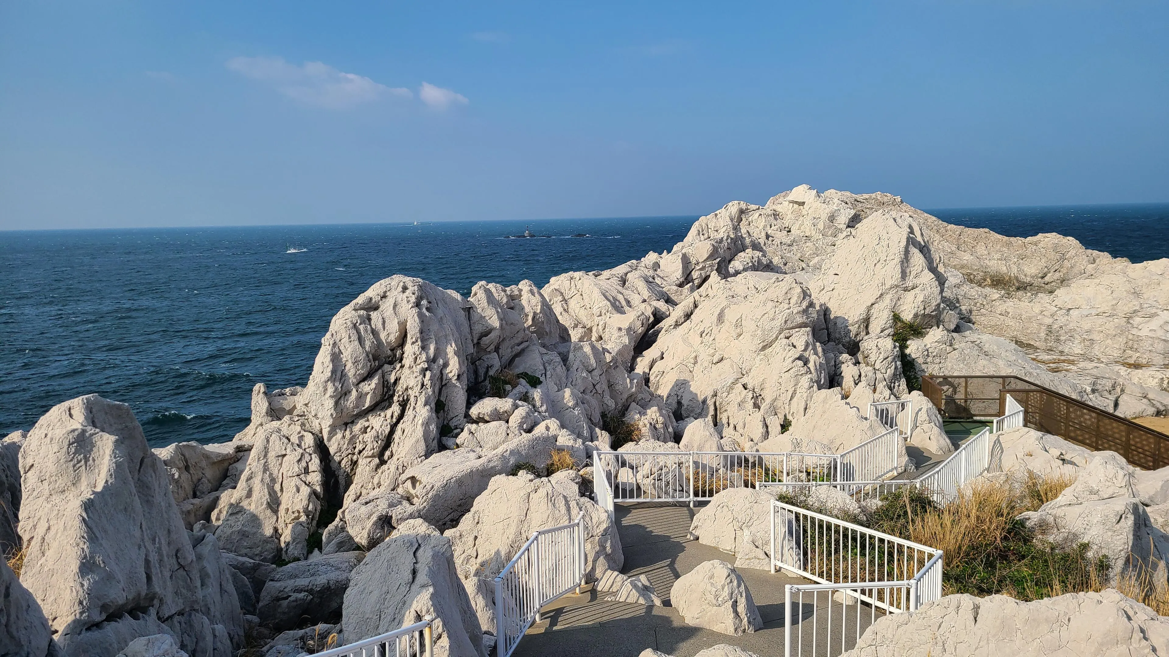その白い岩山に映える碧い海・碧い空がマッチした世界観を表現できればと