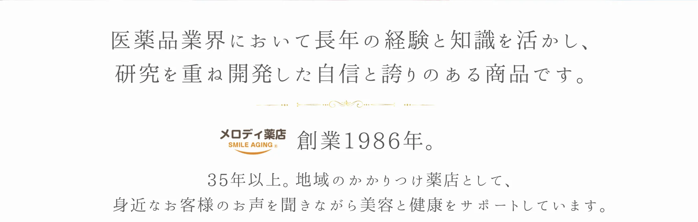 創業1986年の薬屋が選び抜いた自信と結果の出る商品だけをお届けします。 「スマイルエイジング=笑顔溢れる人生」の理念に沿った商品開発も行なっています。