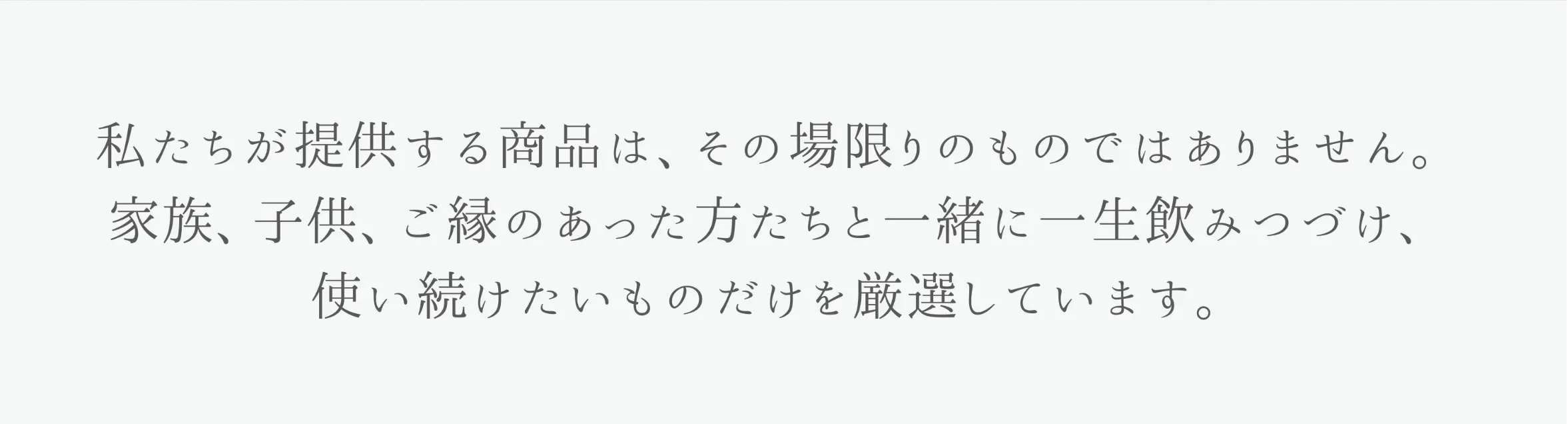 運営にかかわるスタッフ全員が、飲んでいる、使っている、そして自分の大切な人に飲ませたい・使わせたい、と思うものだけ、信念を持って提供しています。