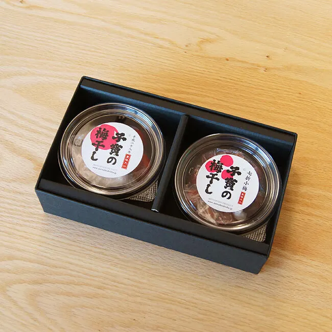 七折小梅は、限られた地域で作られる高級品種の梅です。熟して黄金色になったころ優しく梅干しにします。収穫した梅をそのまま頬張れるのは、農家さんの密かな楽しみです。香高く品の良い味わいは、ご飯のお供というよりは、お茶請けやおつまみに。毎年大人気の梅です。