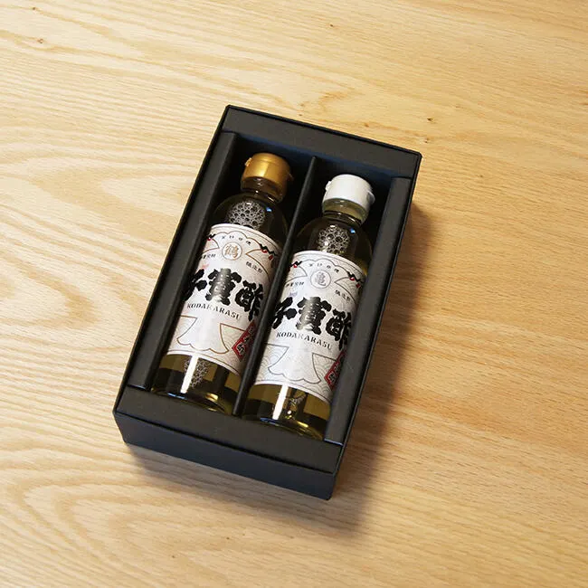 鶴亀と2種類のご用意がございます。和食によく合う旨みたっぷりの純米酢の「鶴」、洋食や中華やエスニック料理のように香味野菜や香味油の香りとも合う「亀」です。
