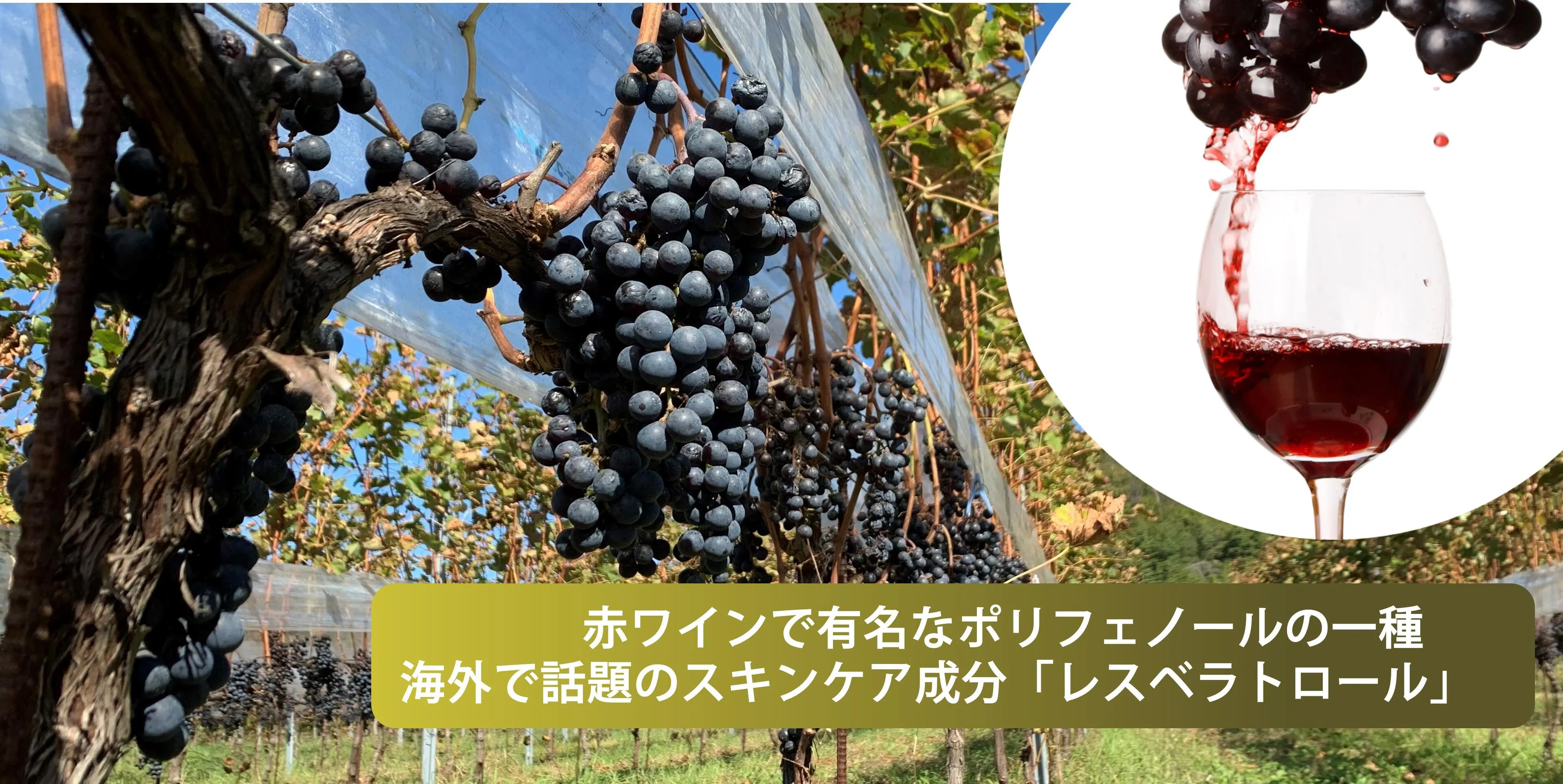 ・長野県上田市のワイン用ぶどうが自らを紫外線から守ろうと生成するポリフェノール(なかでも抗酸化力の高いレスベラトロール)を高濃度に抽出し独自原料として配合