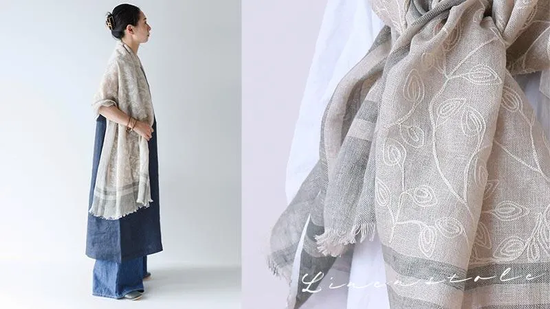 ボー・デコールオリジナルのリネンストールとスカーフはサラッとした肌触りながら、やさしい暖かさ。デリケートな首元にもチクチクしない上質リネンを使用しているので、セーターやカーディガンの首元のアクセントにもおすすめ。季節の変わり目にも重宝します。