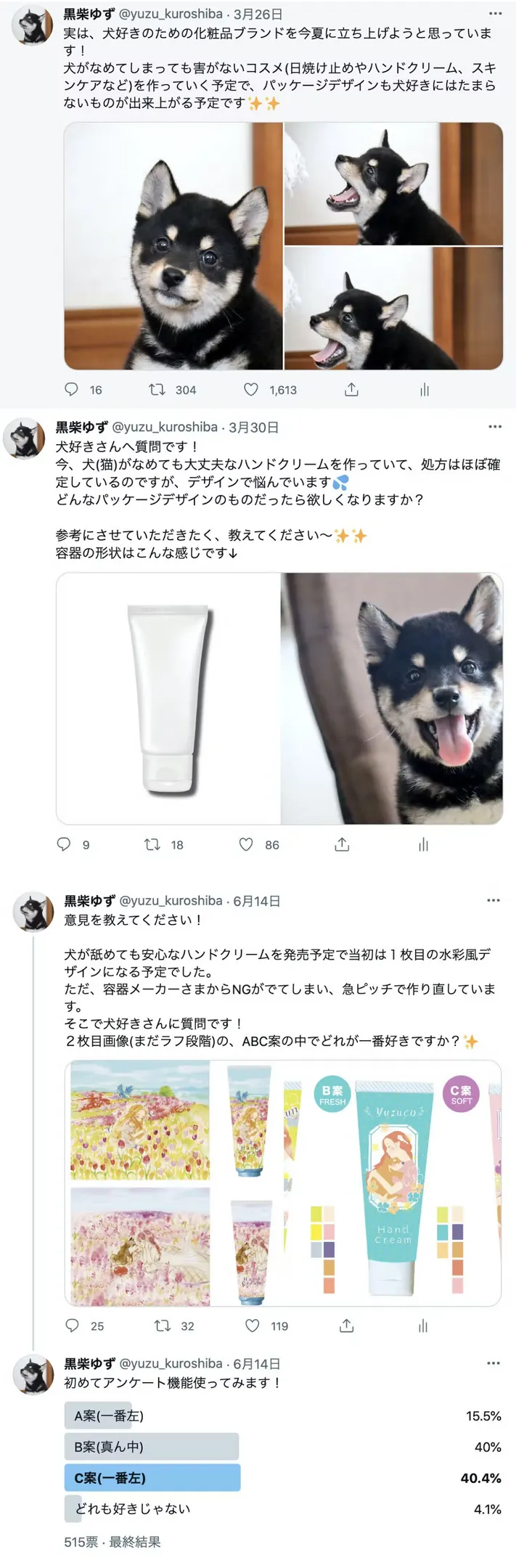 SNSで商品企画の裏側を公開して、実際に犬を飼っている人の意見を取り入れる商品開発。