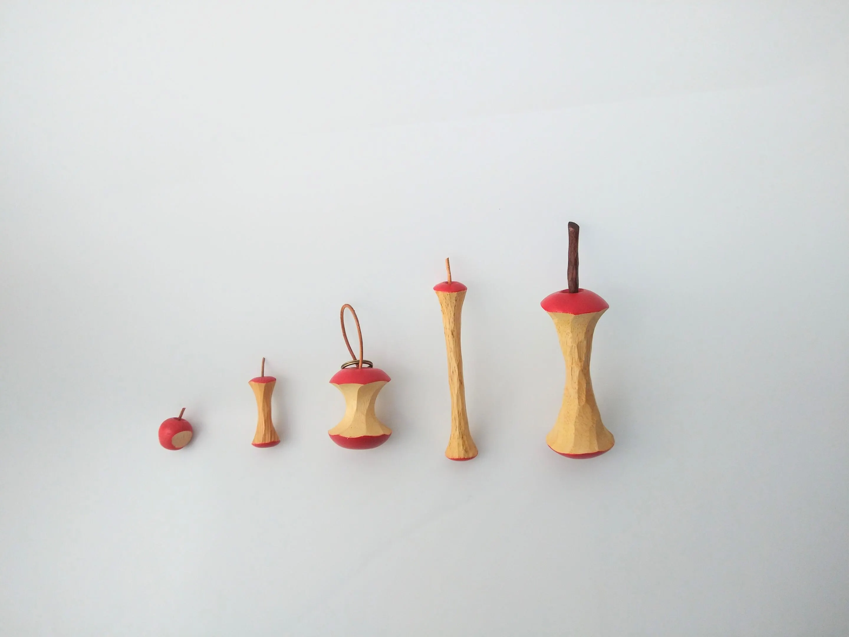 長野県に移住して、リンゴの本当の美味しさを知り。ある日子どもが、美味しすぎて食べるところが無いくらいに、キレイに丸かじりをしたリンゴがテーブルに転がっていました。その食べ終わったリンゴがとても美しく見えて、そのまま形にしました。