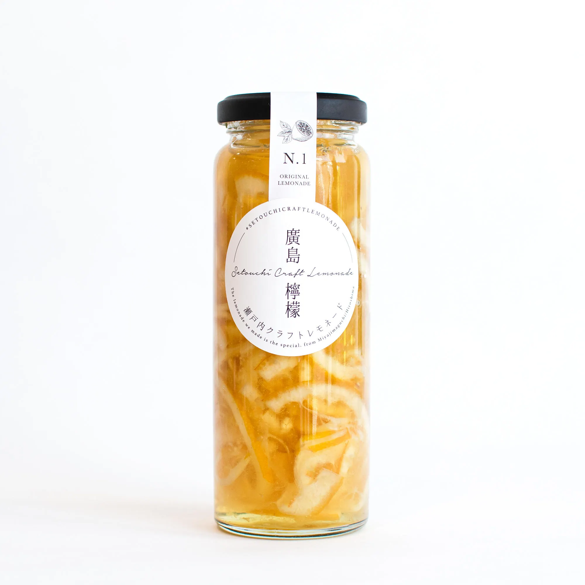 私たちの原点となる定番商品です。大崎上島産レモンを皮ごと使用し、一週間熟成させた「食べる」レモネード。果汁の5倍以上の栄養素が詰まった生レモンピールが入っており、とけるようにやさしい特別なレモン体験を演出します。炭酸水やお湯で割るだけでなく、ウイスキーや白ワインとの相性も抜群です。