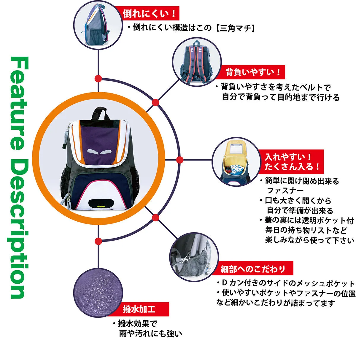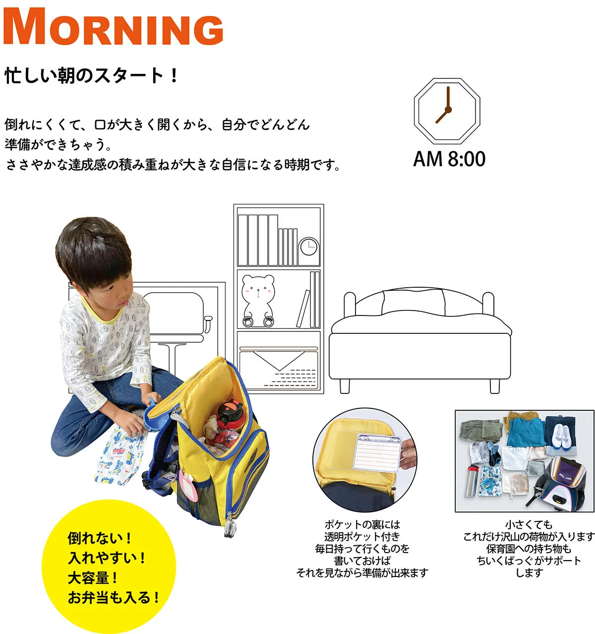 子供は、何かをする時に”中断されてしまうこと”への耐性が低いものです。ちいくばっぐの仕様なら、まだ手指の力が弱い子供でも楽に開閉ができます。