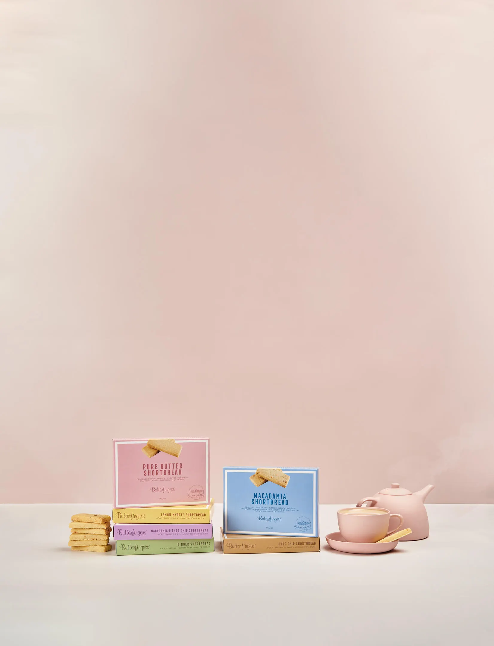 オーストラリアで最高級のショートブレッドとして知られるバターフィンガーズは、伝統的なショートブレッドのレシピにピュアバターと高級材料のみを使用しています。