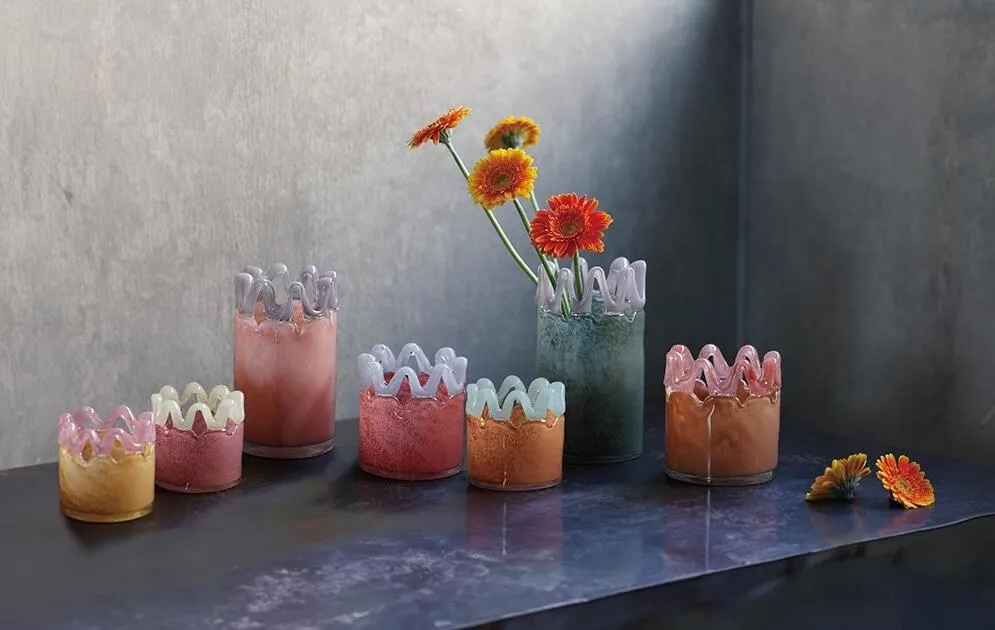 私たちのプロダクトは、伝統的な技法と現代的な感性の融合から生まれます。例えば、「Valente」シリーズでは、アイアンの質感とマットな色合いを組み合わせ、ヴェネツィアの街並みのように色とりどりに並ぶ花器を実現しました。ザラっとした手触りと光を反射しない表面処理は、工業製品でありながら、どこか手作りの温かみを感じさせます。