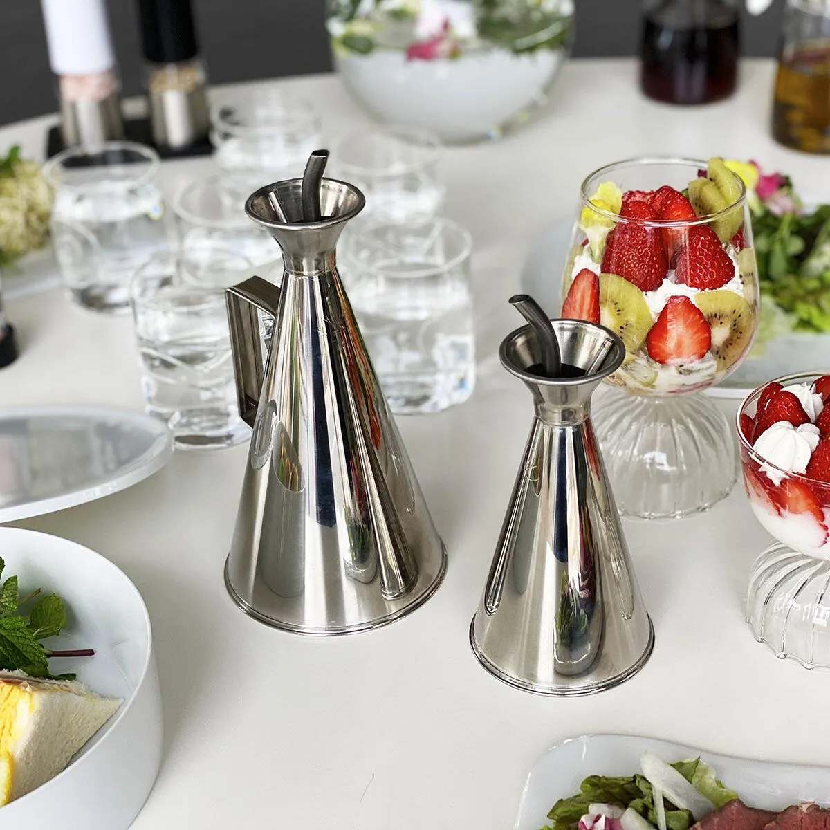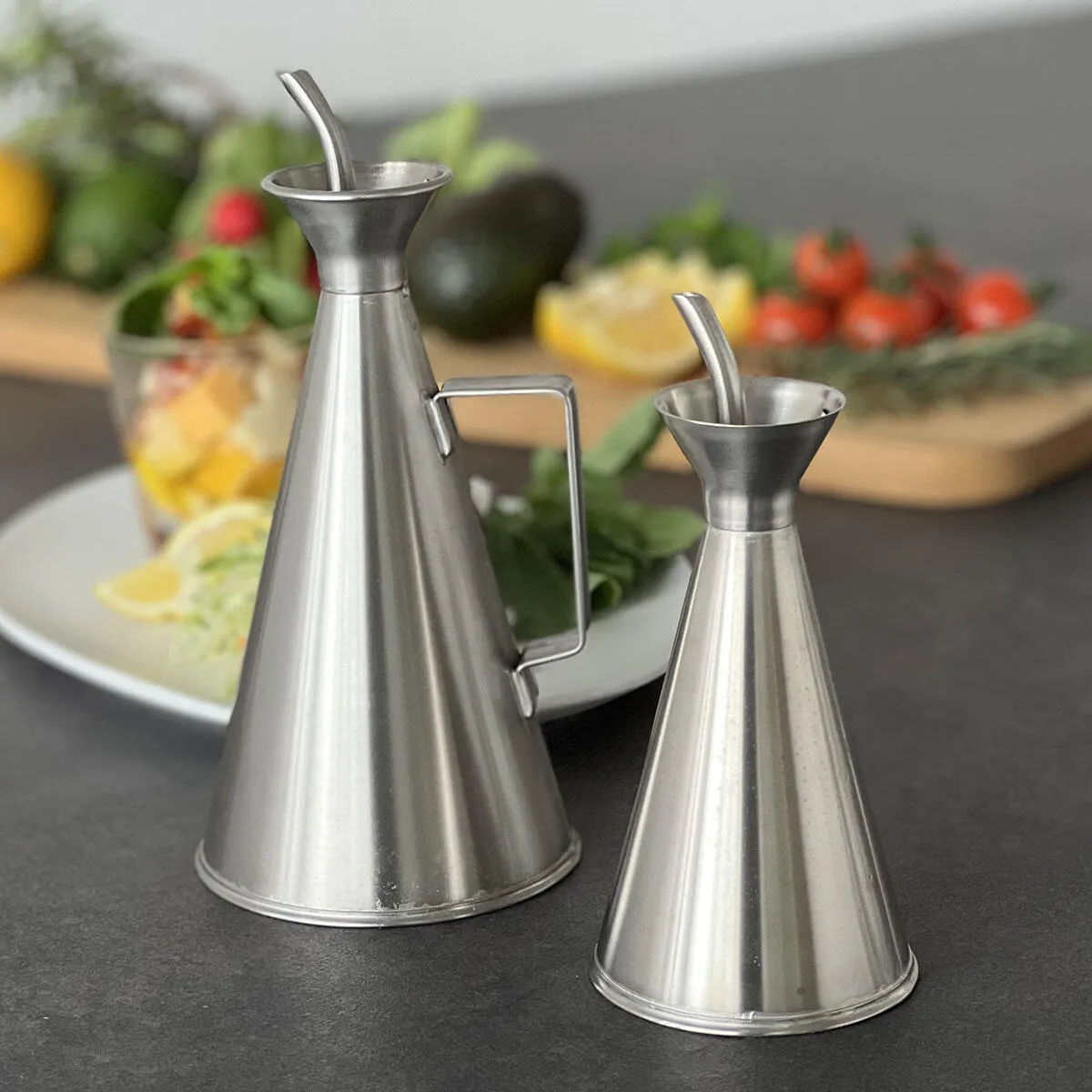 オイルが劣化しにくいステンレス製のオイルポット。光沢のあるポリッシュ仕上げ