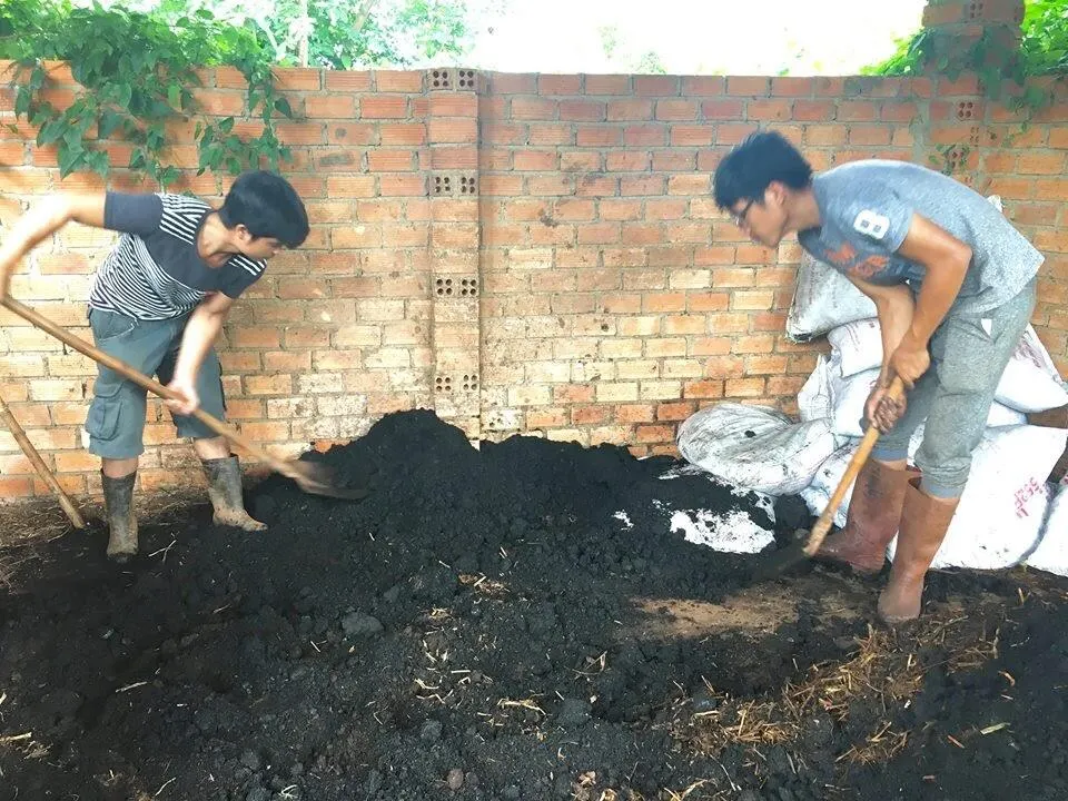 ・赤土に堆肥を入れて、微生物いっぱいのふかふかの土に
