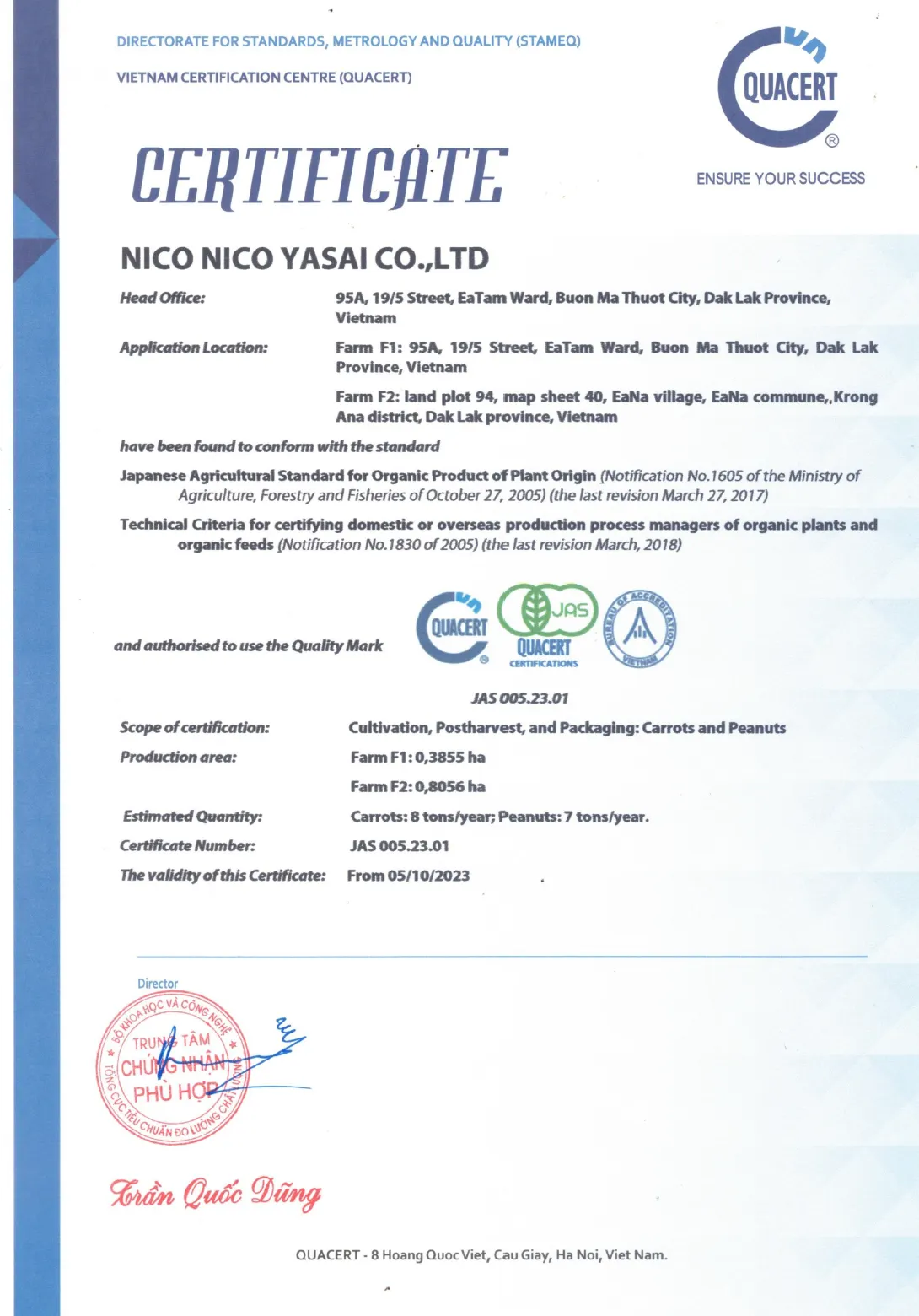 ベトナム自社農場で、畑の有機JAS認証を取得しました。