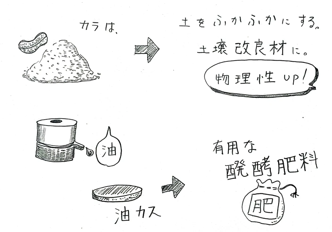 ・ピーナッツの殻は、土をふかふかにする土壌改良材に