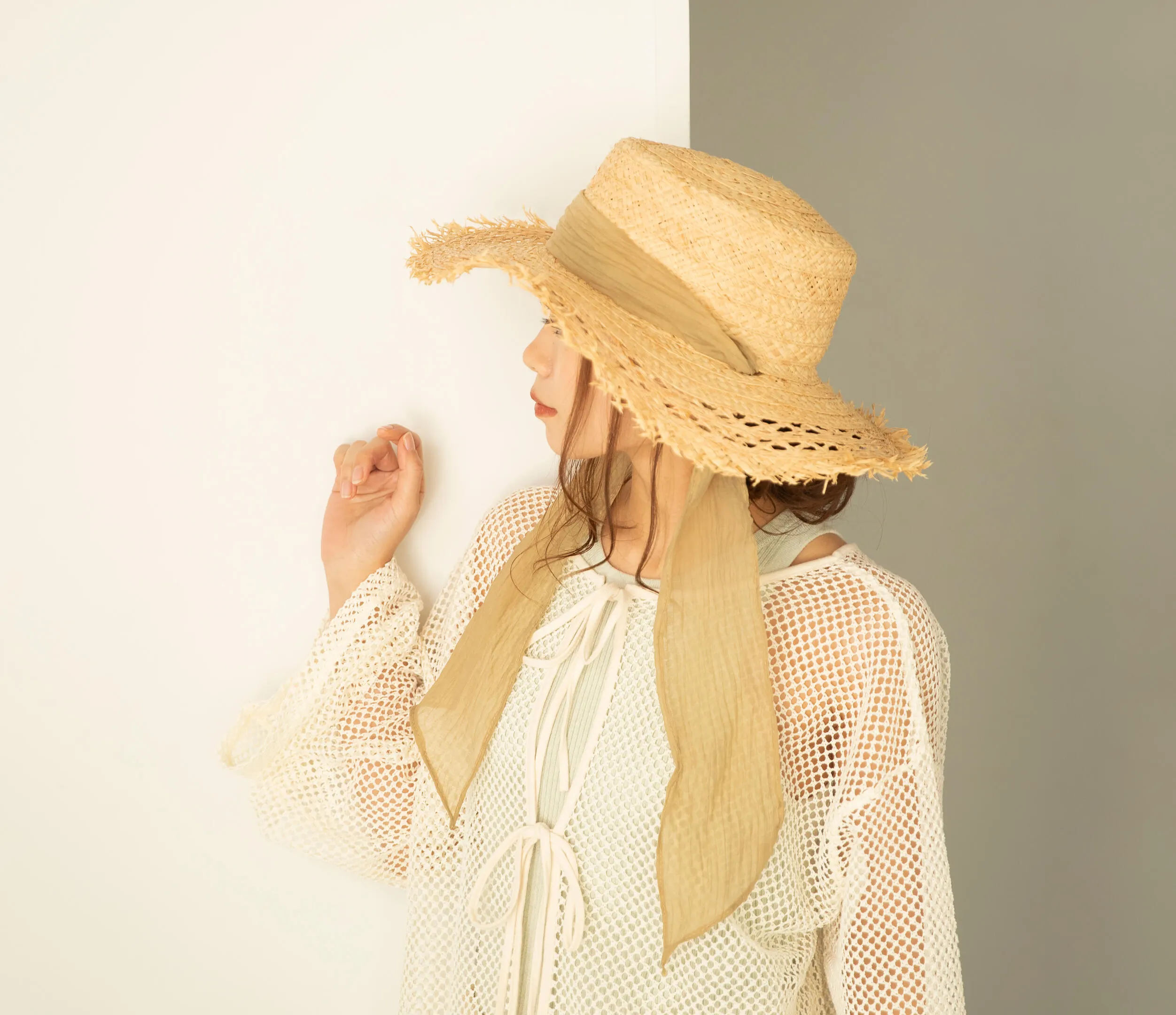 ツバがレース編みとフリンジになっており、爽やかなアイテムです。