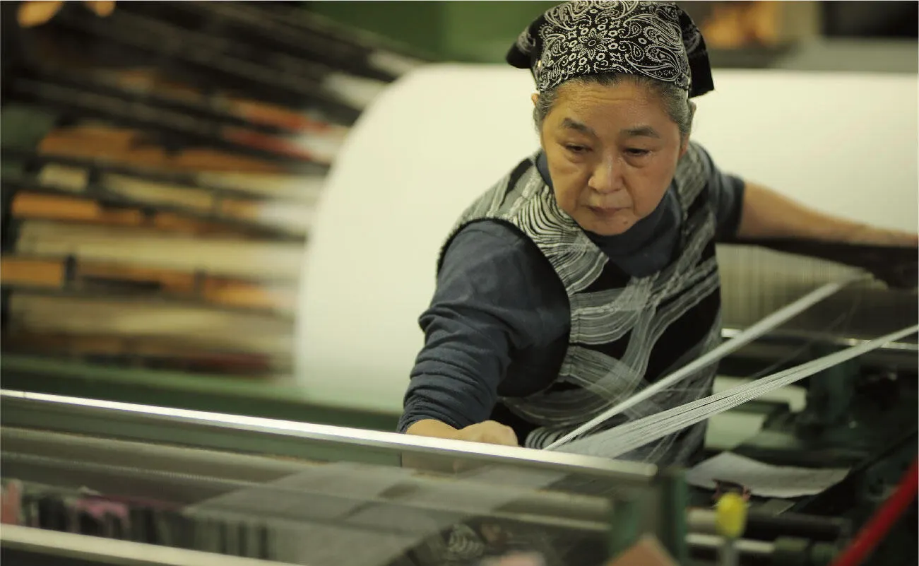 素材選びから、織り、染め、後処理に至るまで、 卓越した職人技が相互に協働する完結した産地だからこそ、 他に真似のできない新しいものづくりが可能となっています。