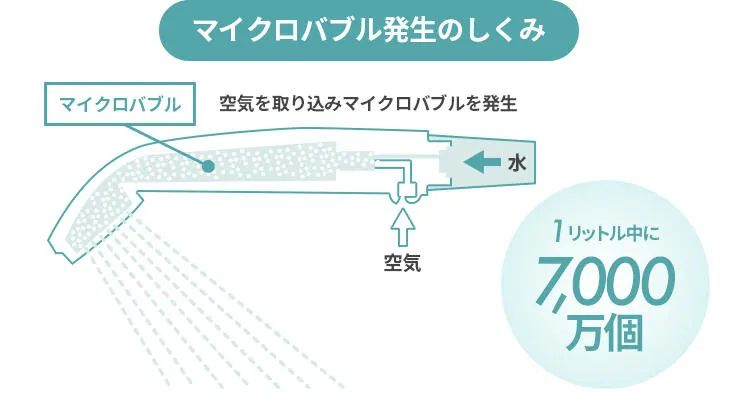 洗浄力の決め手は約20μmのバブルサイズ、勢いあるシャワーで皮脂汚れを落とします。