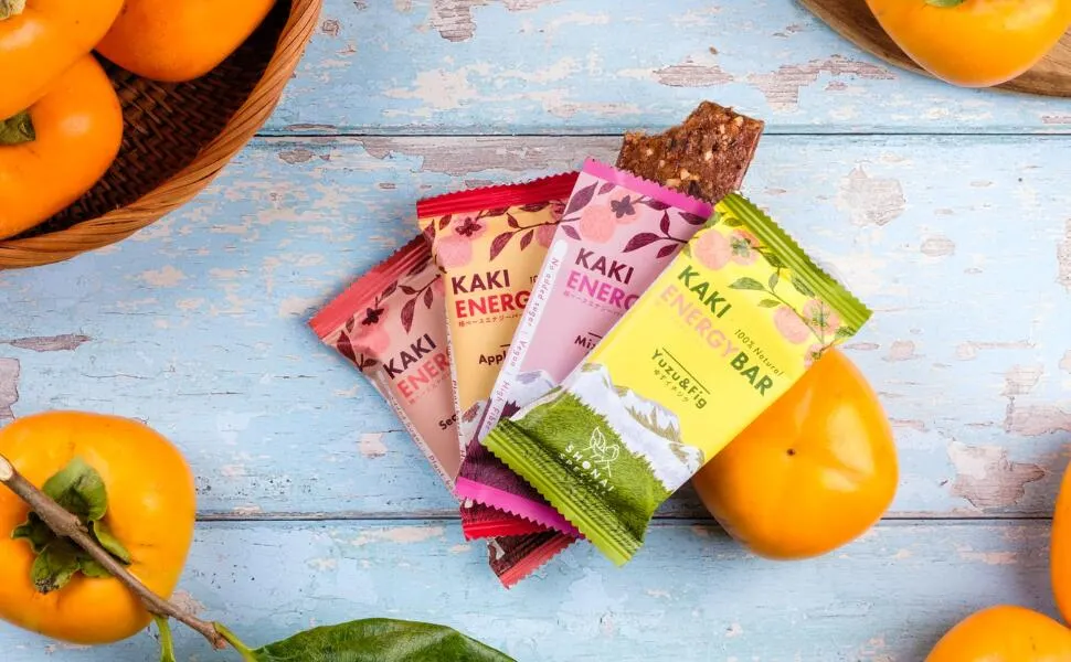 食物繊維が豊富な庄内柿をベースに、有機発芽玄米粉やナッツ、オーツなど植物由来の原材料を組み合わせ、様々な栄養素をバランス良く摂取できるナチュラルエナジーバー。