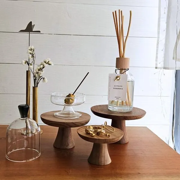 アカシアウッドで作られた、あたたかみのある脚付きコンポート。S〜Lサイズまで揃い、重ねて使うだけで空間に立体感と存在感をプラスできます。アクセサリーやお菓子、植物のディスプレイ台として幅広く活躍。濃淡のある木目や個体差を活かした表情は一点一点異なり、手仕事ならではの魅力を楽しめるアイテムです。