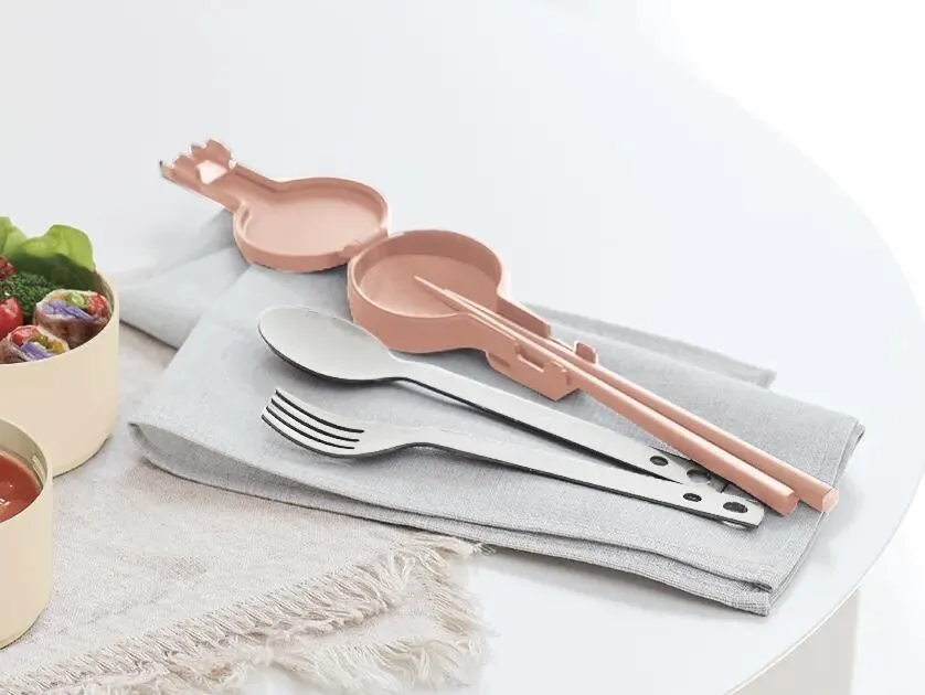 環境にやさしいバンブーファイバーとリサイクル性に優れたアルミニウムを使用したカトラリーセット。