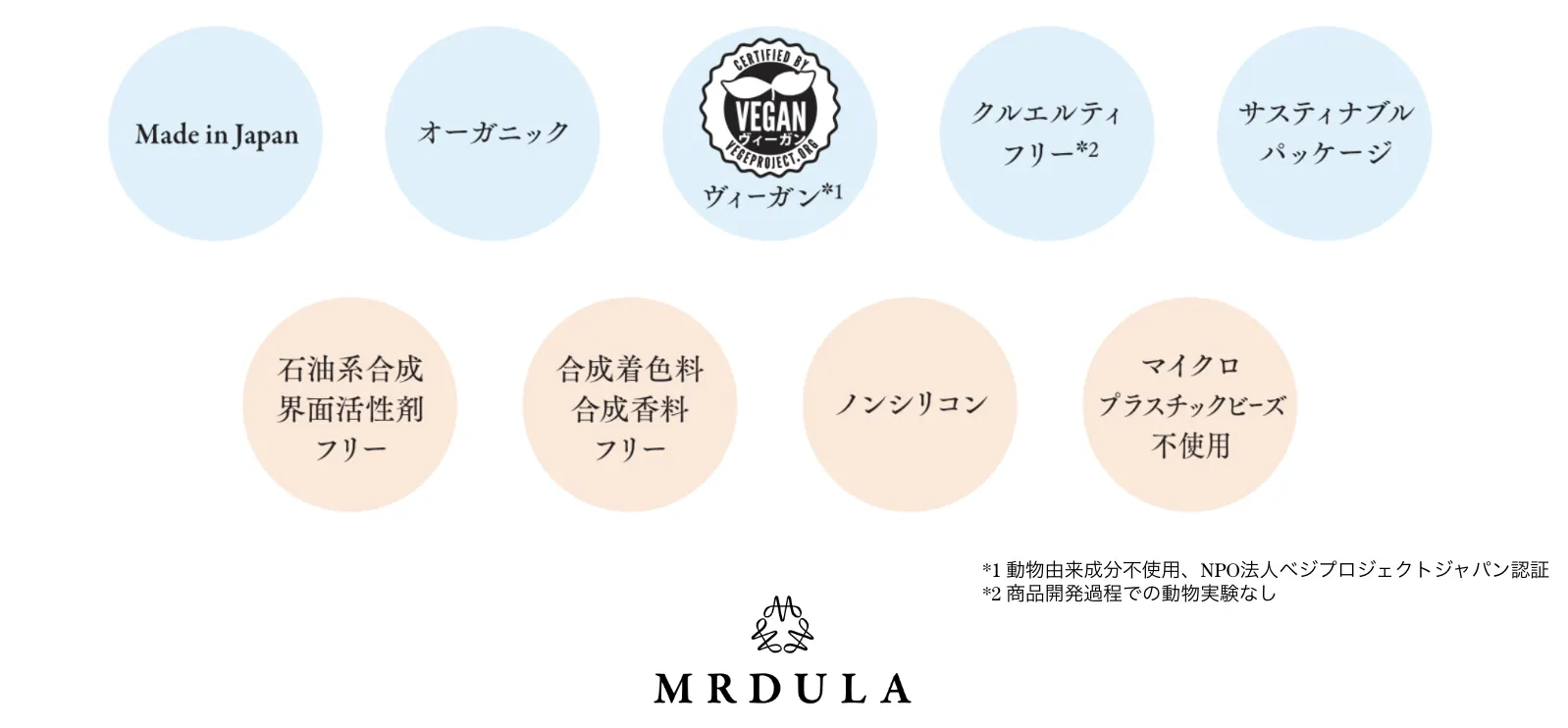 NPO法人ベジプロジェクトジャパンの認証を取得しています。動物由来の成分を使わず、動物実験を行わない「ヴィーガン」「クルエルティフリー」を徹底しており、長期的かつサステナブルな美のかたちを追求しています。