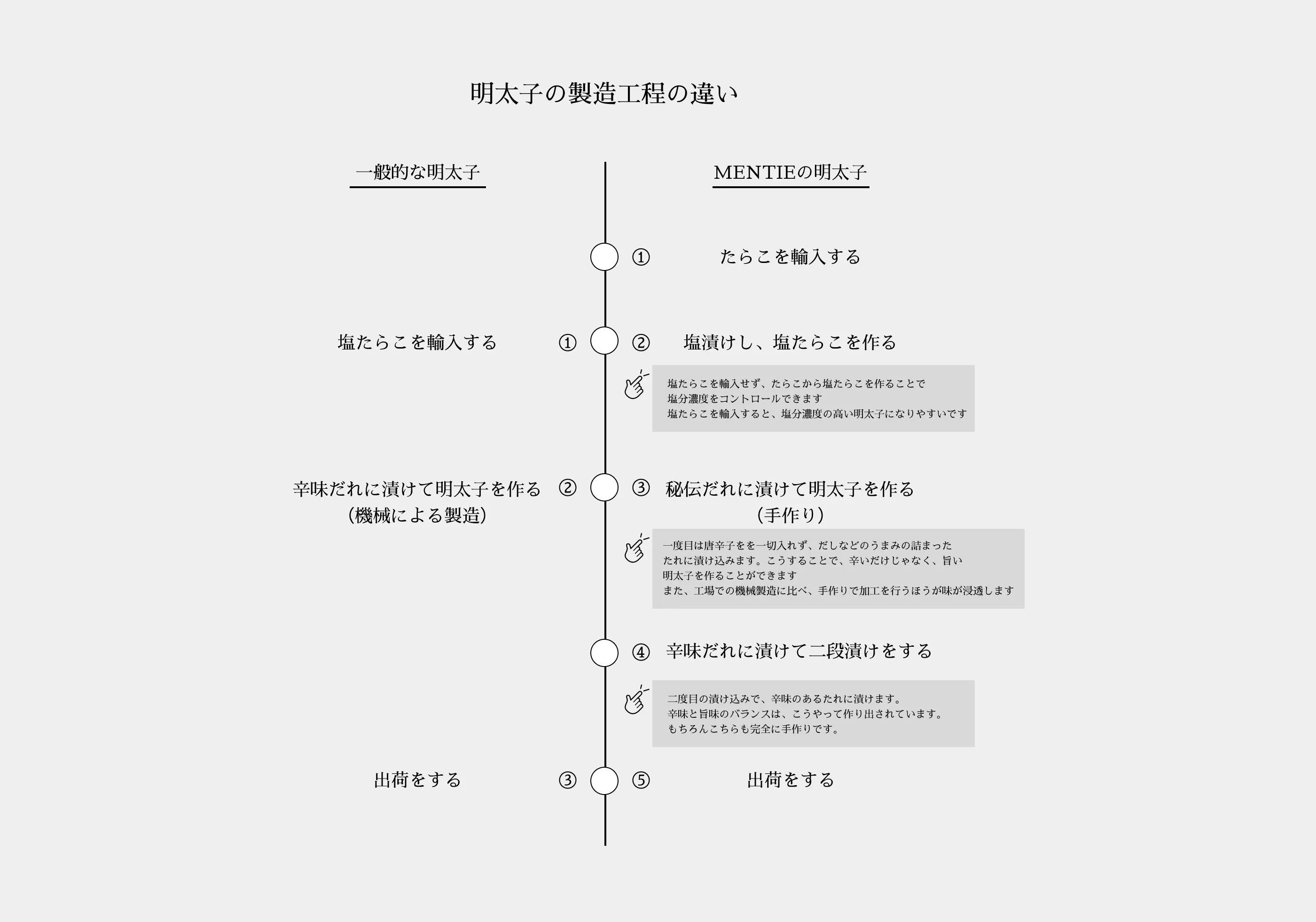 工場で生産された明太子は、たらこの個体差ごとの味の調整ができず、実はかえって味にばらつきが出ます。