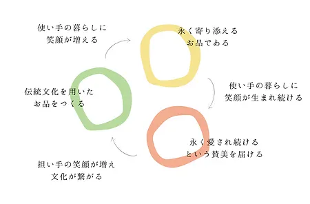 「一生もの」を目指し、ライフスタイルや年齢、体型が変わっても、永く暮らしに寄り添い続けられるお品を目指しています。