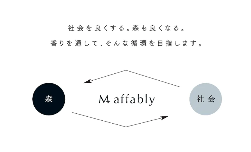 新しい技術で社会や生活が著しく発展していく今、森や植物から生まれる特別な香りで「人」の「今」を「未来」へ繋げていく役割りを担いたいと願っています。