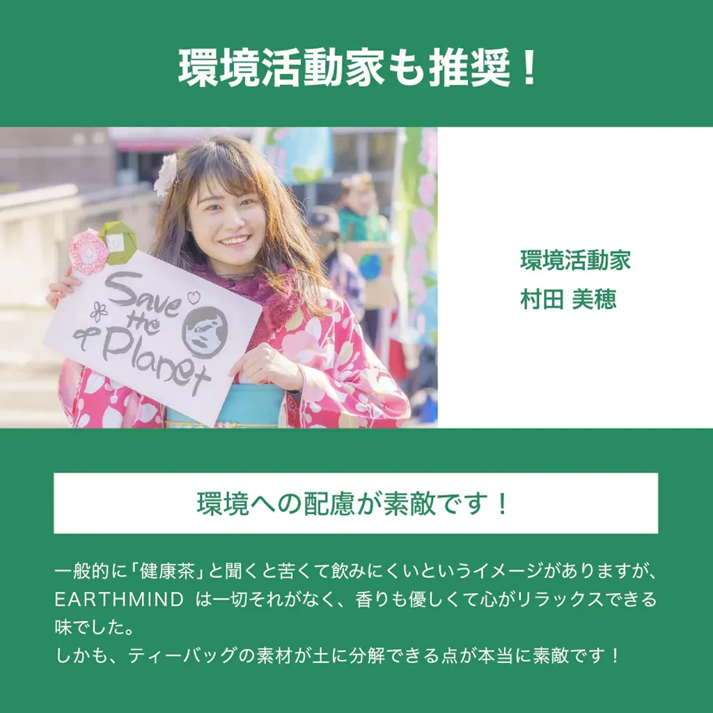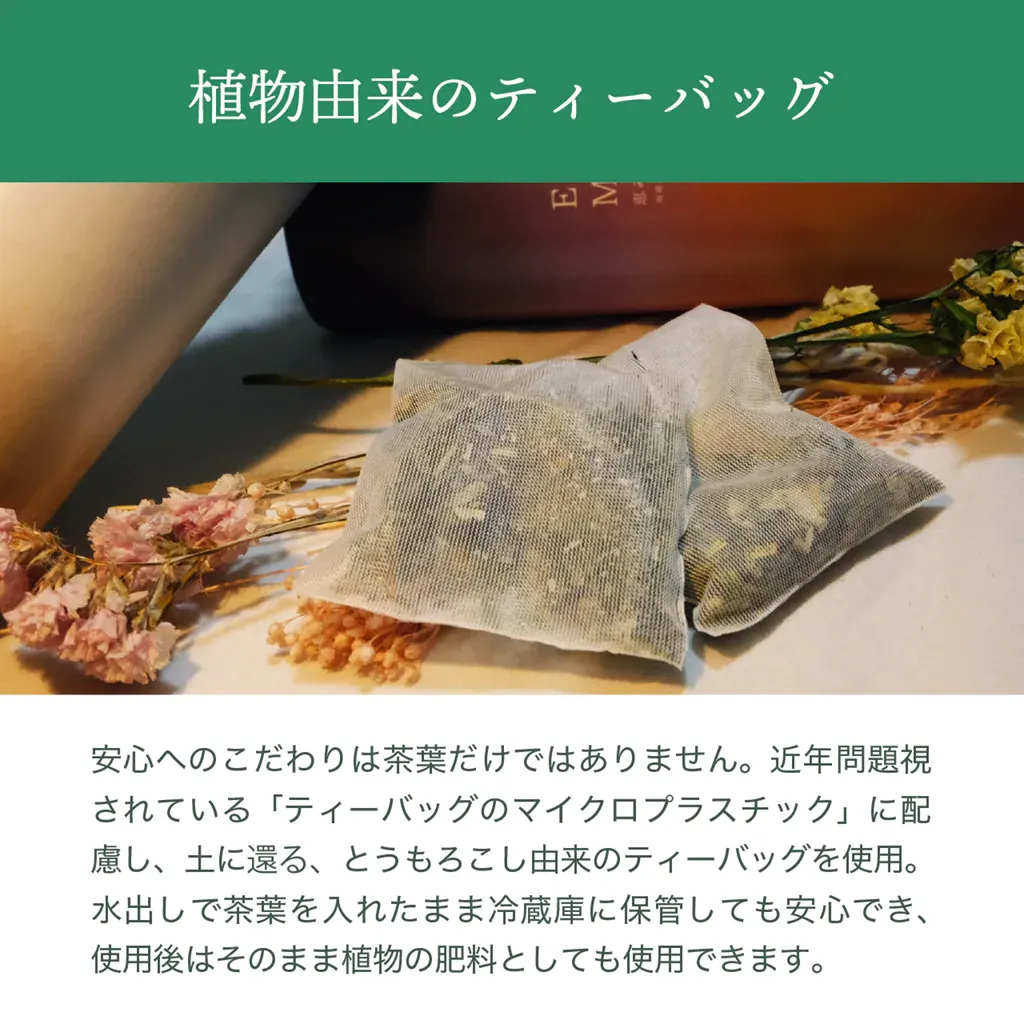 また使用しているティーバッグは生分解性でできており使用後は土に還すことがが可能です。