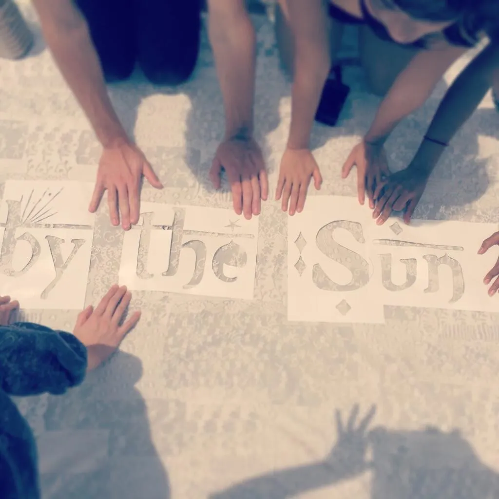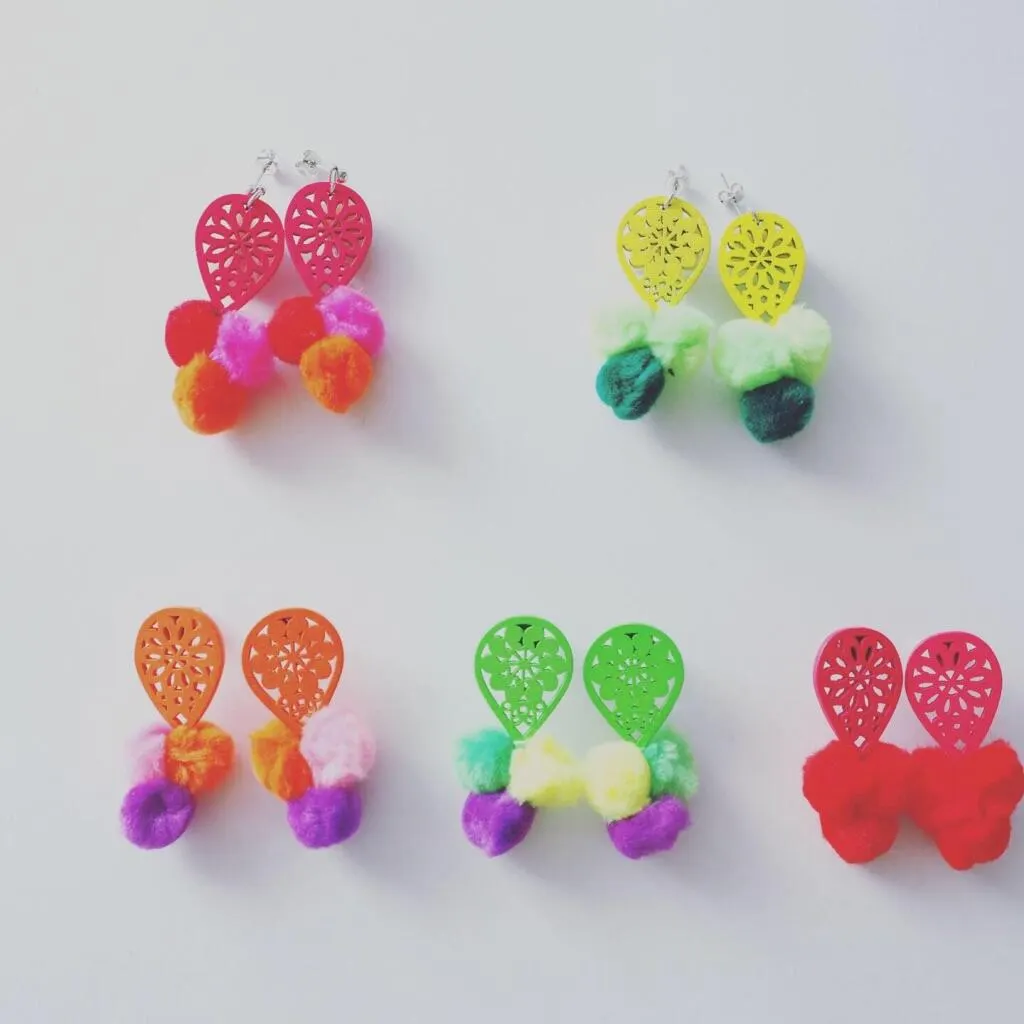 MUSTARD=ヤシャブシ、PINK=泥染と鉄、BLUE=藍染、GREEN=愛染xヤシャブシ