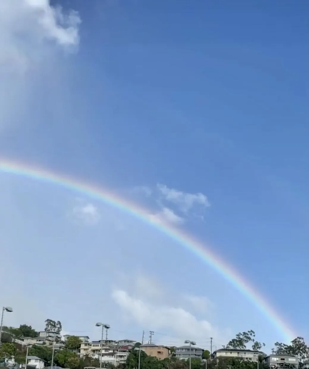 降り注ぐ太陽の光、突然あらわれる虹の橋、