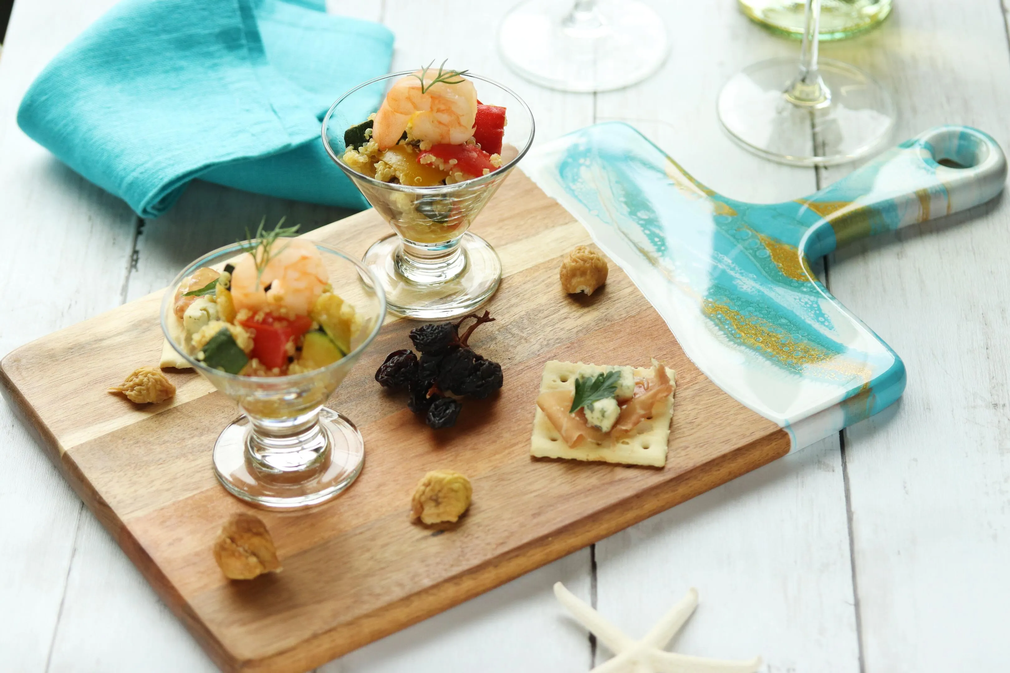 Lynn & Liana Designsのアカシアカッティングボードは、美しい盛り付けを素敵に演出し、ちょっとしたパーティーでの会話のネタにもなります。そして何より、食卓に置いていないときは、ご自宅のインテリアに美しい彩りを添えてくれるのです。