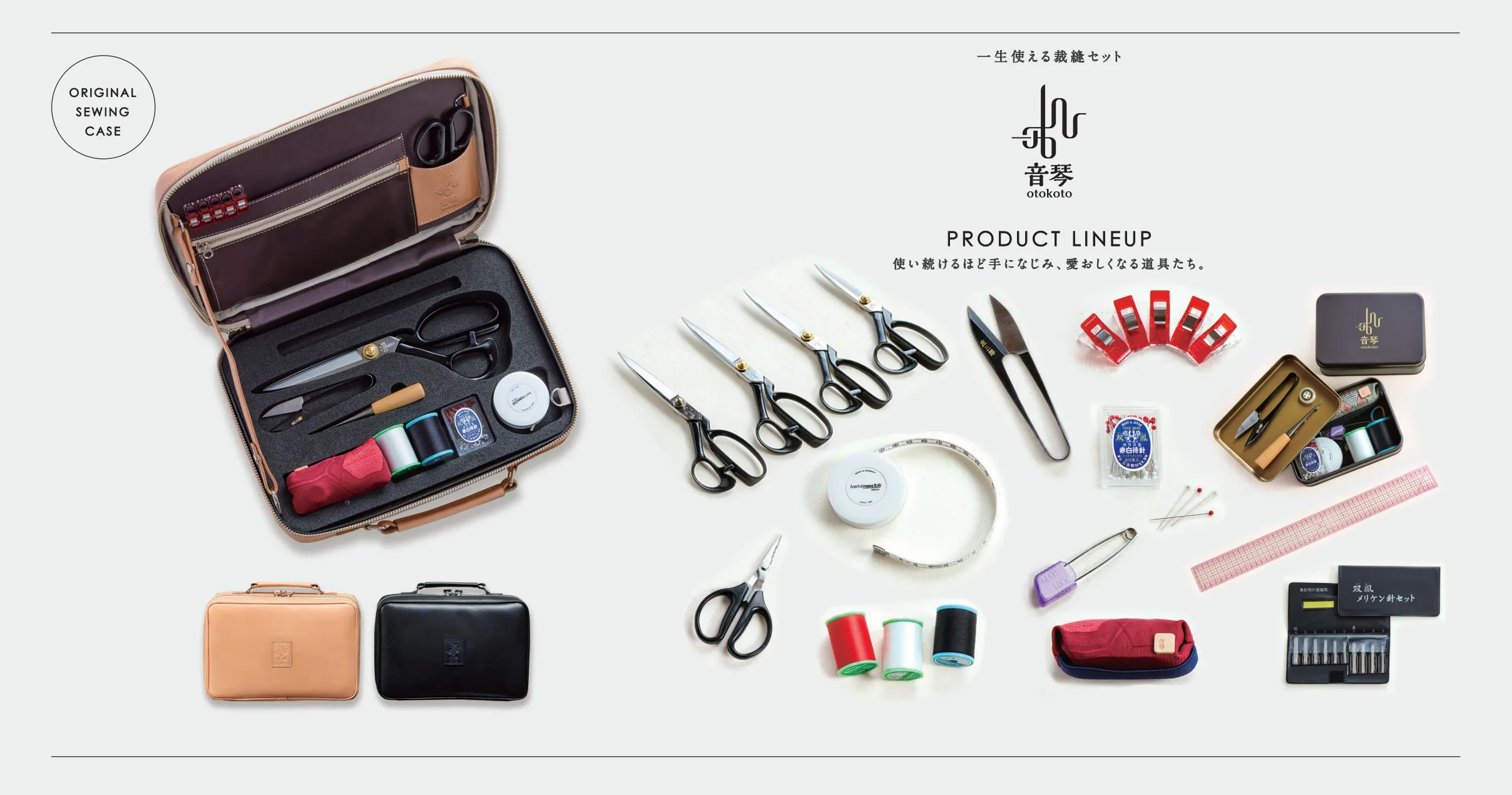 長年のデザイナー経験を活かして使いやすく経年性の高い裁縫道具ばかり集めた「音琴otokoto裁縫箱」を販売。