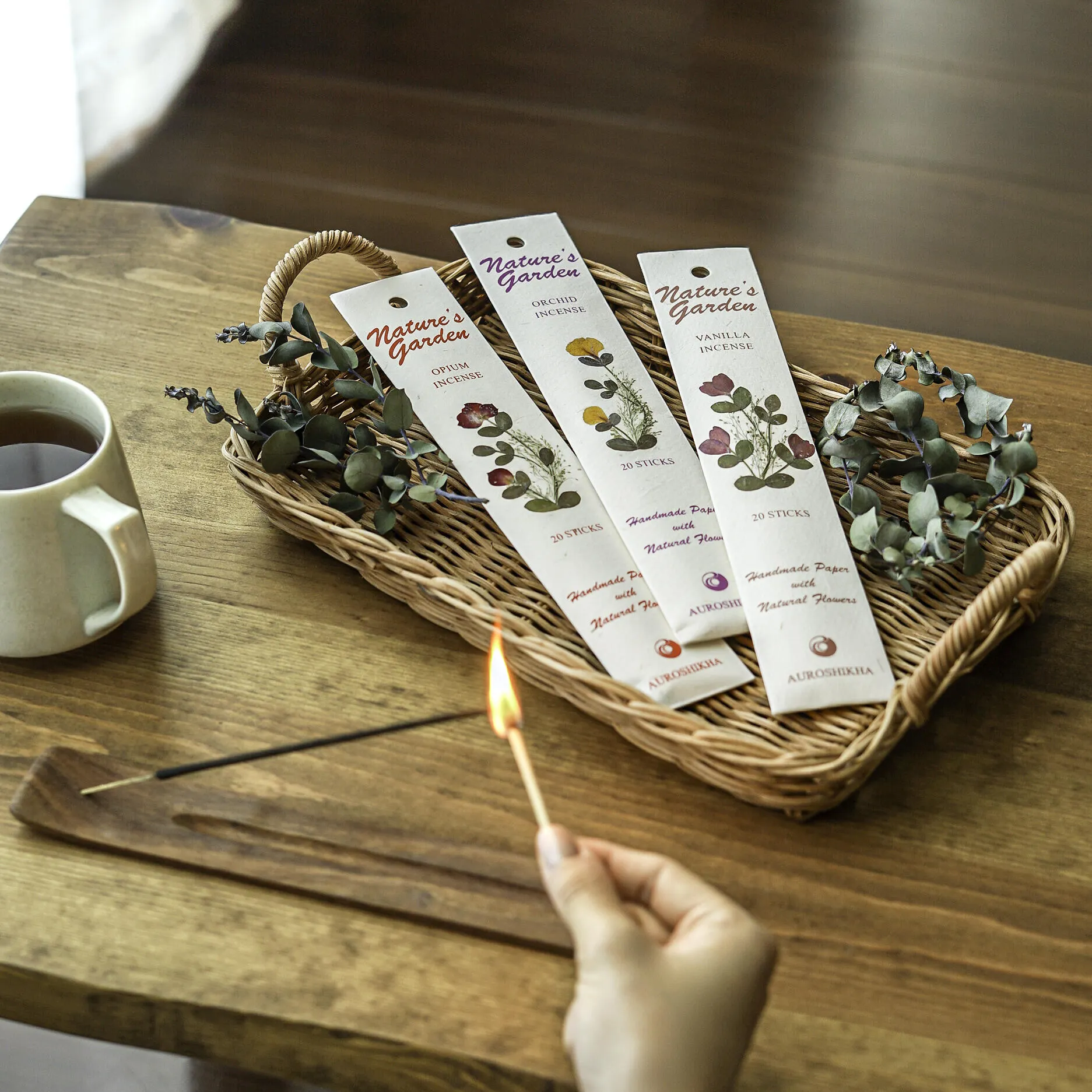 インドの老舗ブランド「AUROSHIKHA」によるナチュラルインセンス。天然原料を使用し、空間にやさしく広がる自然で奥行きのある香りが特長。