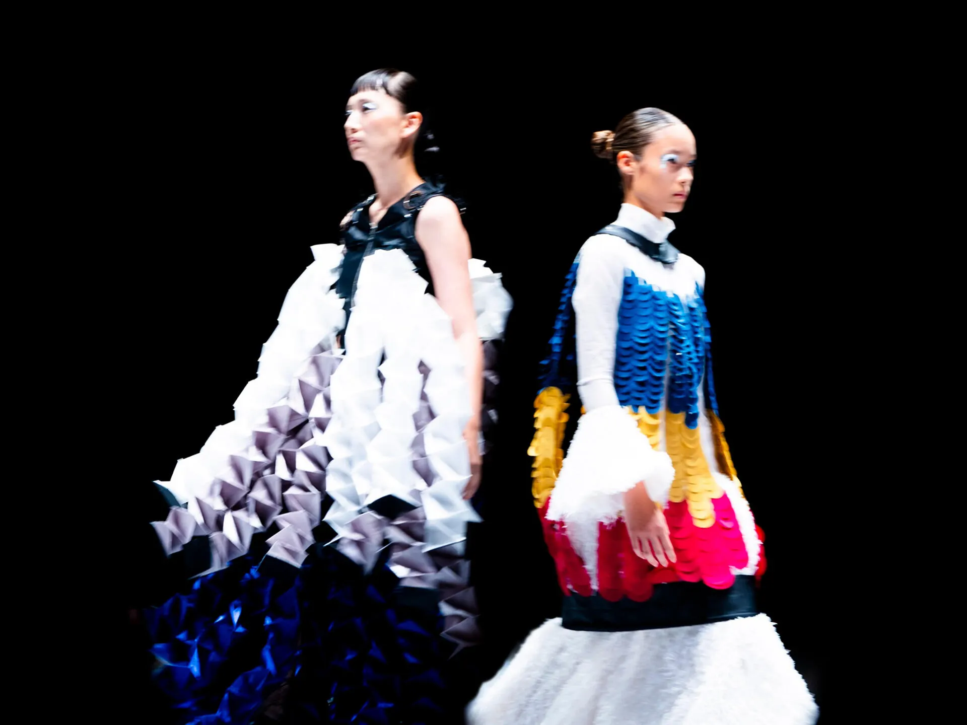 上質なクリアツイルと華やかなドット柄のサテンオパールを巧みに組み合わせ、魅力的なドレープを演出したスカートです。
