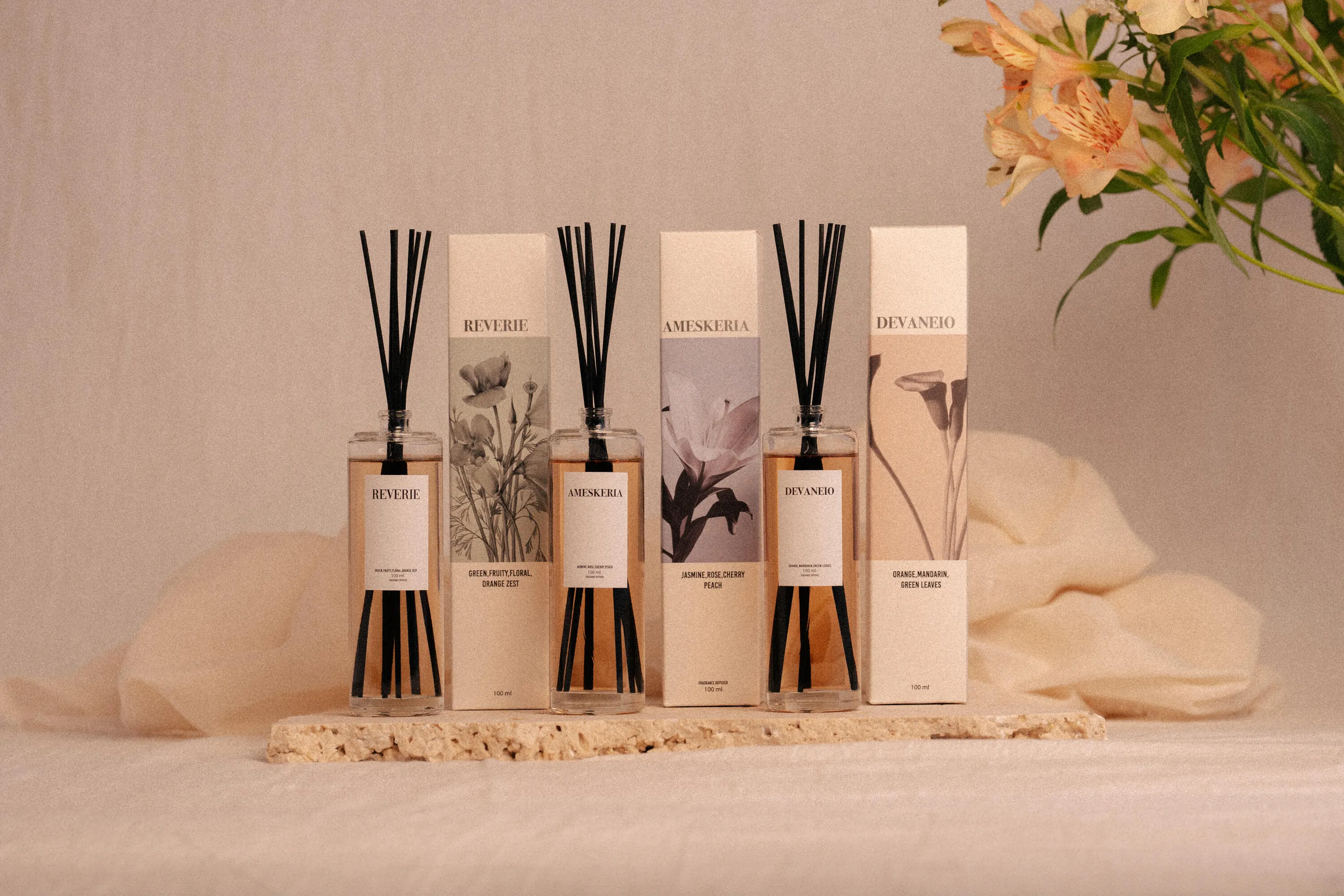 香りは「夢想」をイメージしながら、異なるコンセプトのフローラルノートを展開しています。